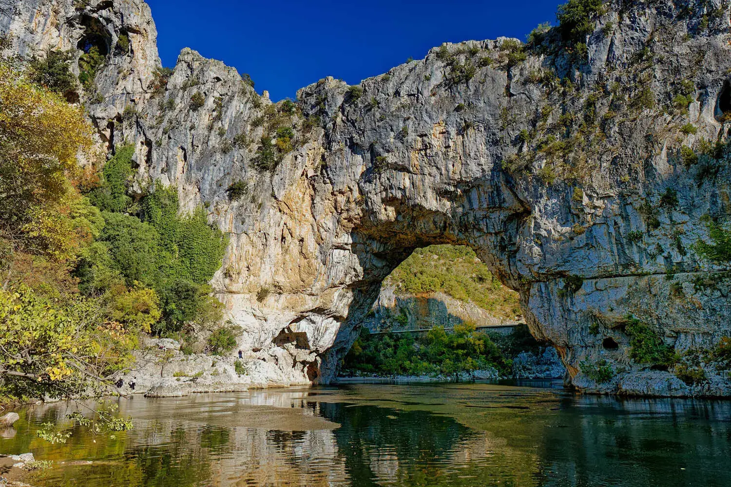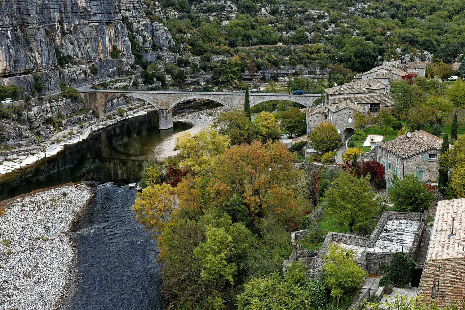 Les Gorges de l’Ardèche : Site emblématique, classé Réserve Naturelle. Une trentaine de kilomètres de gorges spectaculaires creusées dans le calcaire, ponctuées de cirques et de grottes. Le Pont d’Arc, arche naturelle de 54 m de haut, en est le joyau.