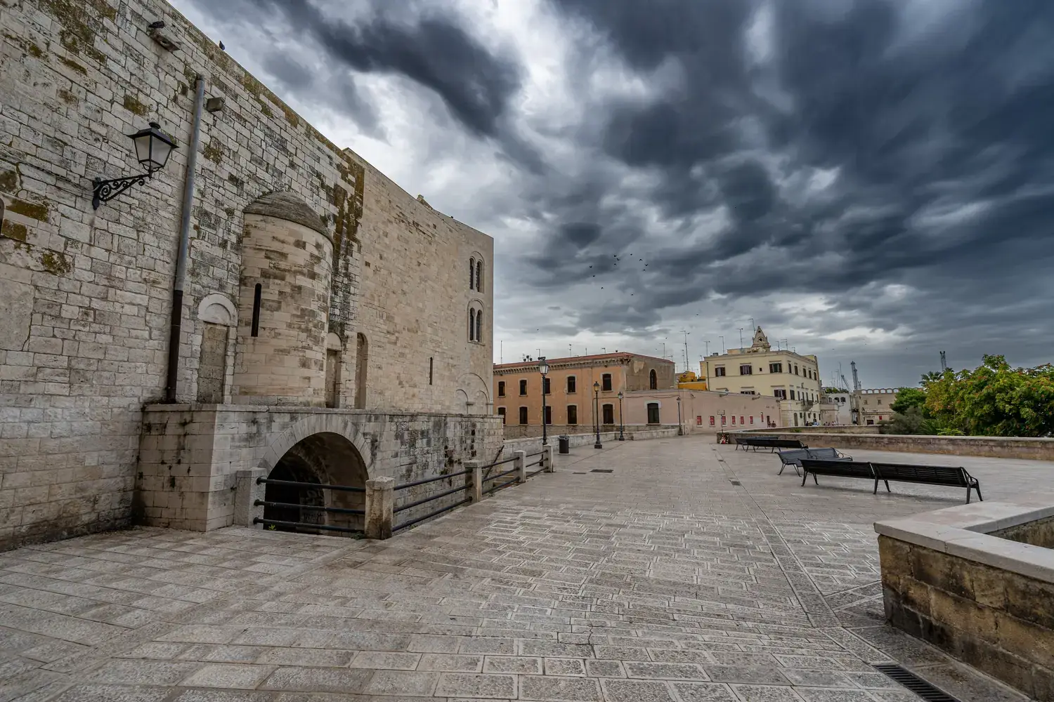 Le Lungomare Nazario Sauro : Une magnifique promenade le long de la mer qui longe la vieille ville. Parfaite pour une balade au coucher du soleil, offrant des vues imprenables sur la mer Adriatique et les remparts de Bari Vecchia.