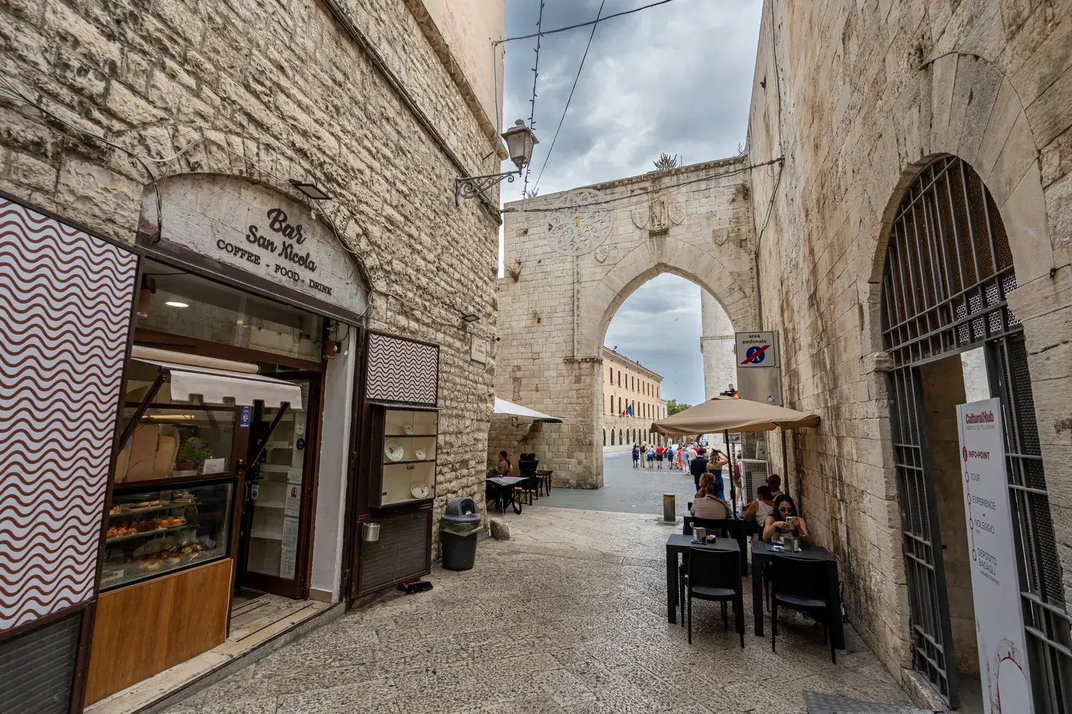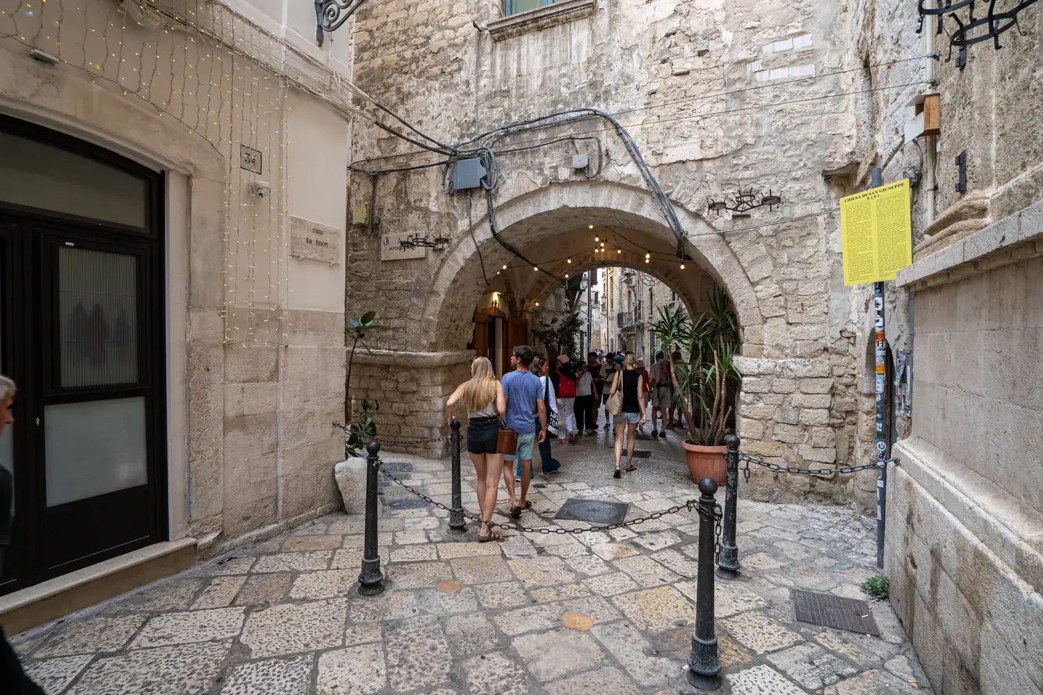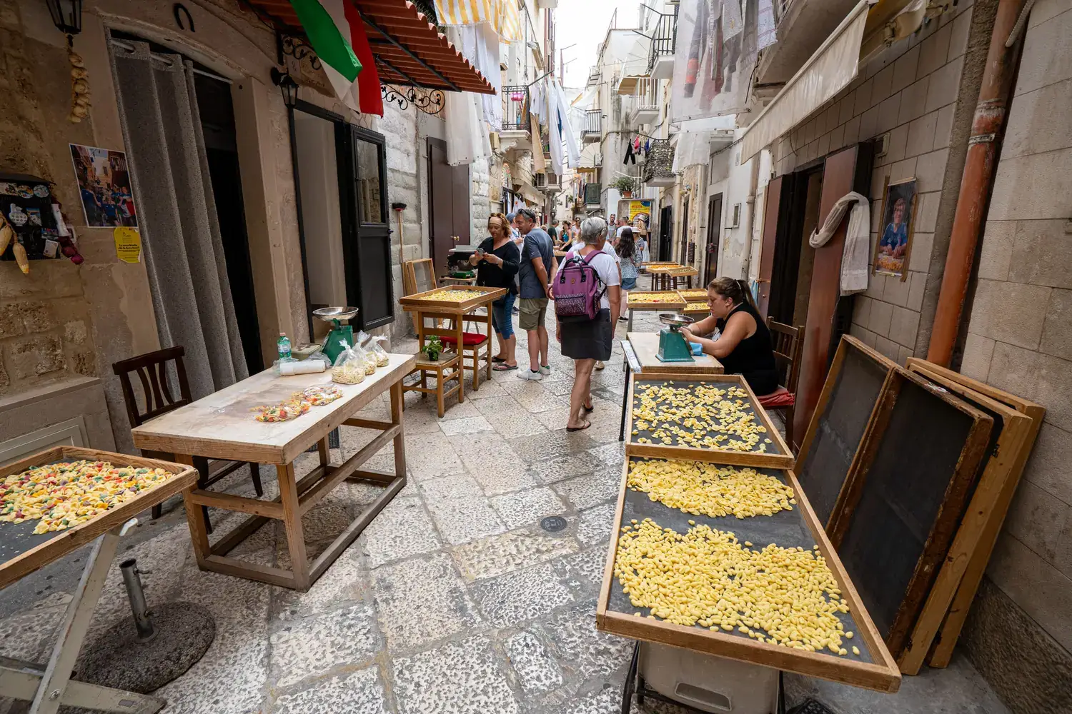 La Via dell’Arco Basso : C’est dans cette rue et ses alentours que vous pourrez assister à un spectacle unique : les « signore dei orecchiette » (les dames des oreillettes). Assises devant leur porte, elles préparent à la main la célèbre pâte des Pouilles, orecchiette, suivant une tradition séculaire. Vous pouvez même en acheter fraîches !
