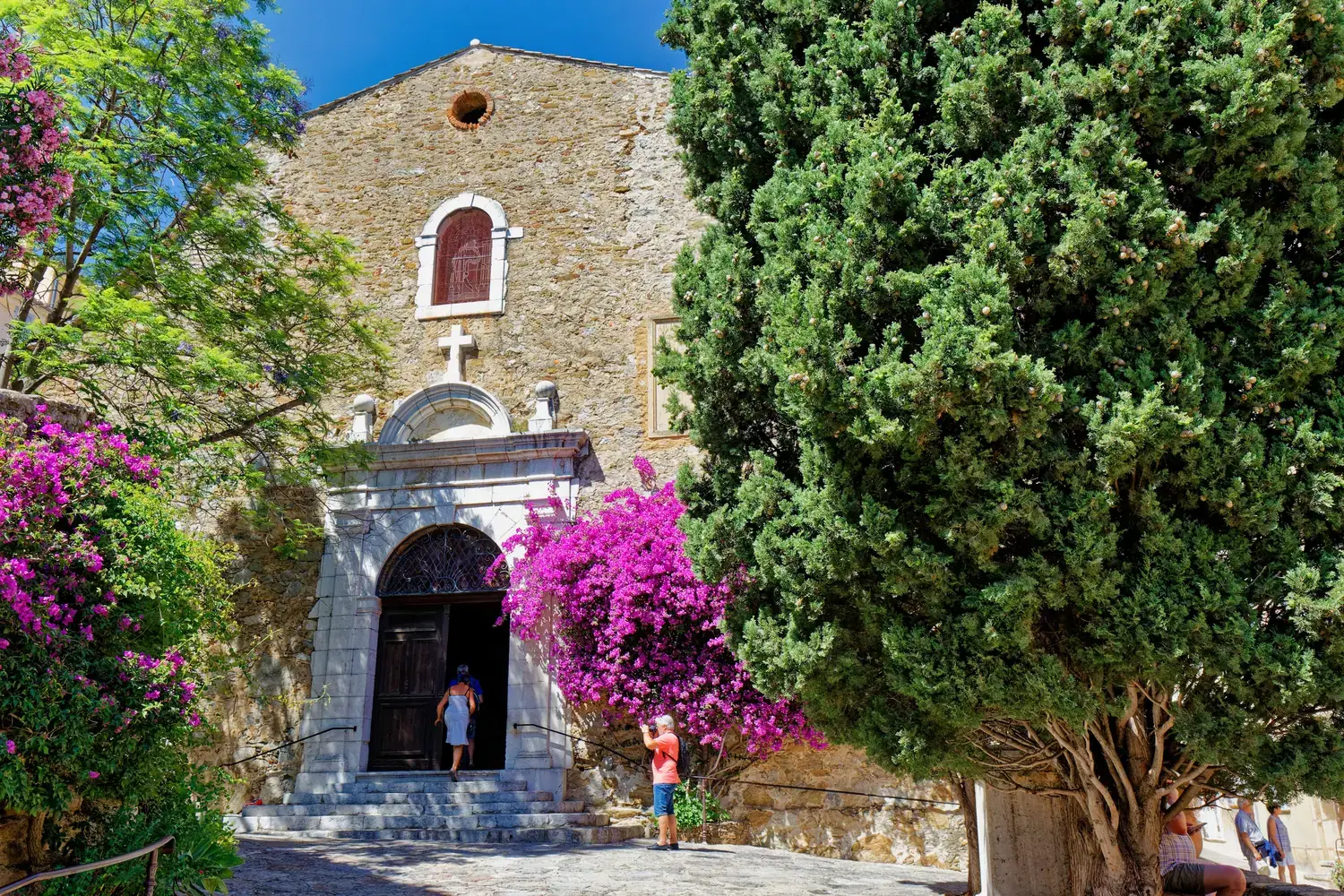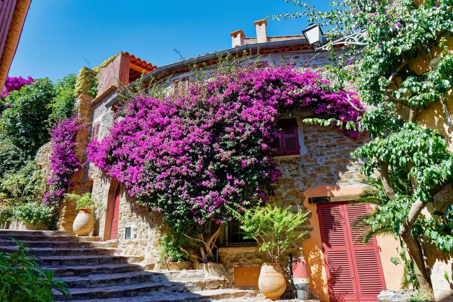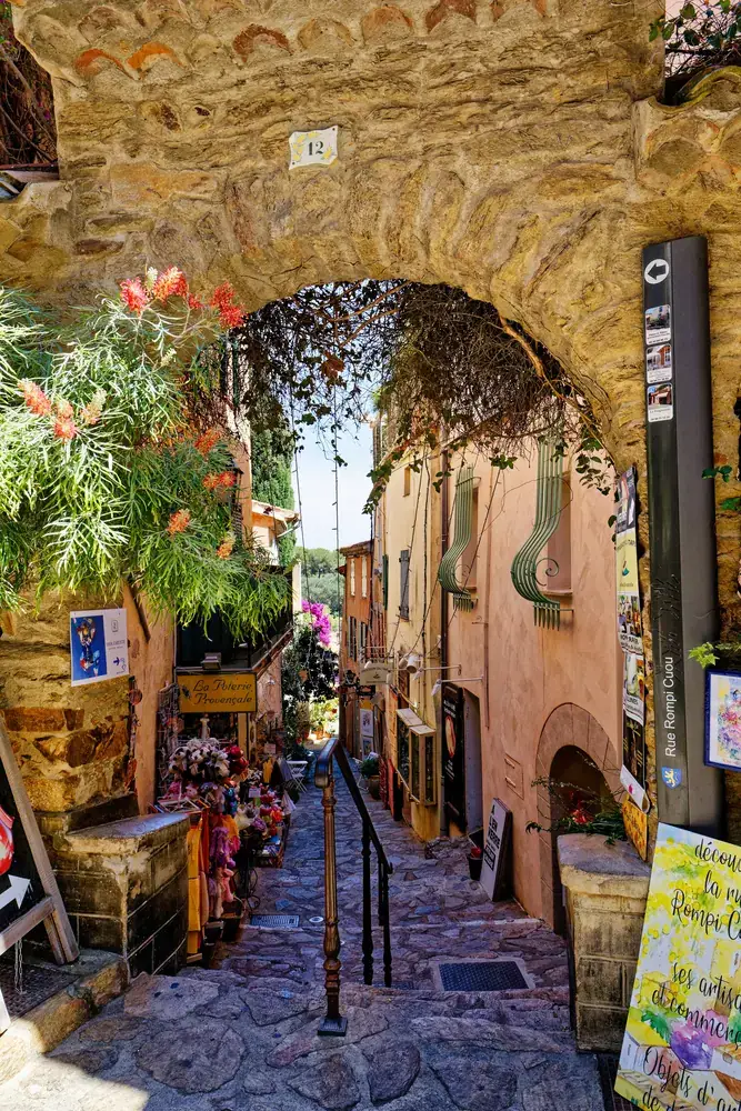 Village médiéval : Le cœur du village est un labyrinthe de ruelles pittoresques, d’escaliers et de passages voûtés. Les maisons sont décorées de fleurs, ce qui ajoute à son charme.
