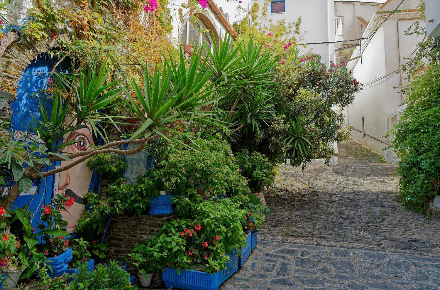 Le labyrinthe médiéval : Le centre historique est un dédale de ruelles étroites et pavées, aux murs blanchis à la chaux, agrémentés de fleurs aux couleurs vives (bougainvilliers, géraniums).