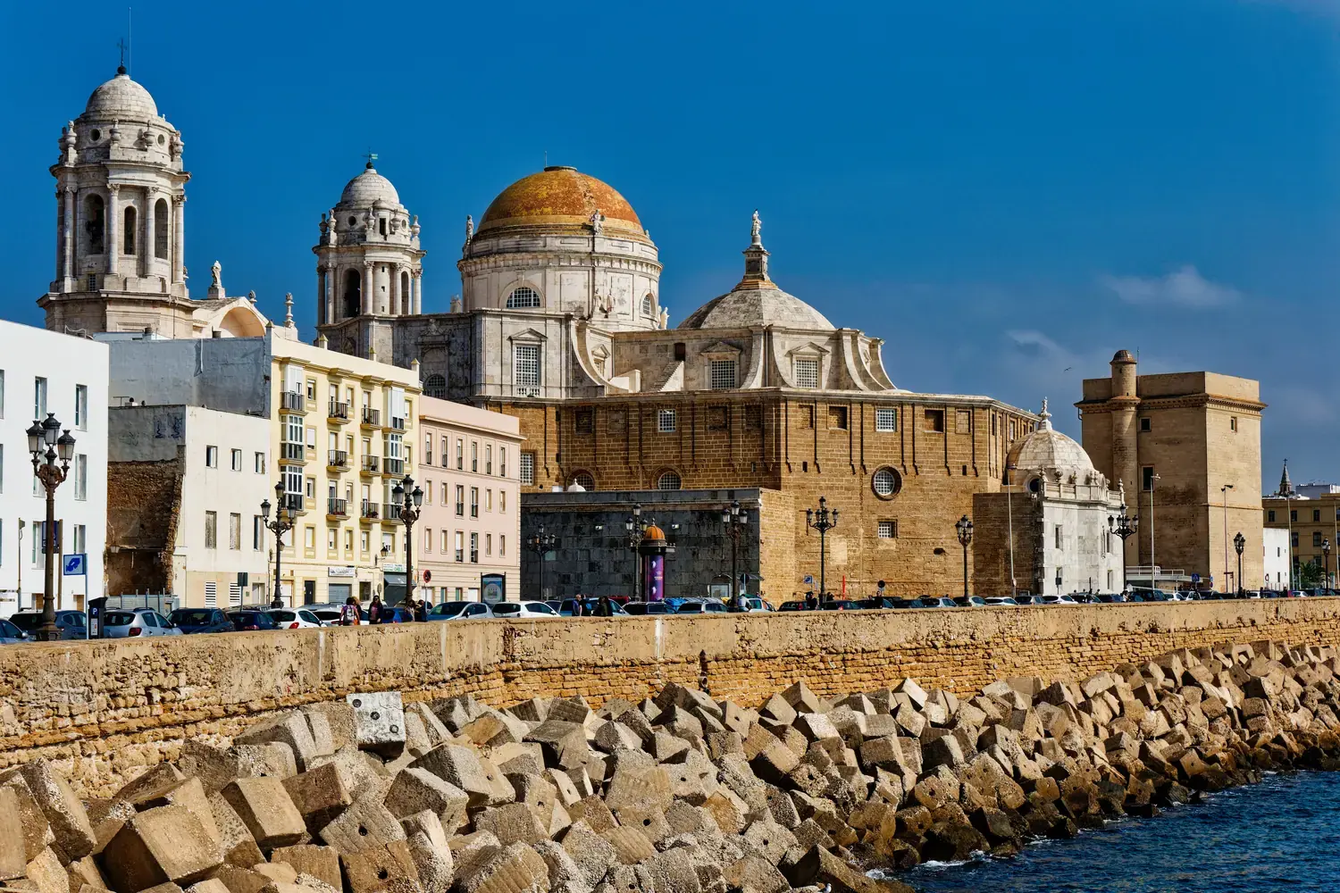 Appelée « La Santa Cruz sobre el Mar » ou « Catedral Nueva », elle mélange les styles baroque et néoclassique. Sa coupole dorée est un point de repère visible de toute la ville. Ne manquez pas de monter dans la Torre del Poniente pour une vue panoramique à 360° sur la ville et l’océan.