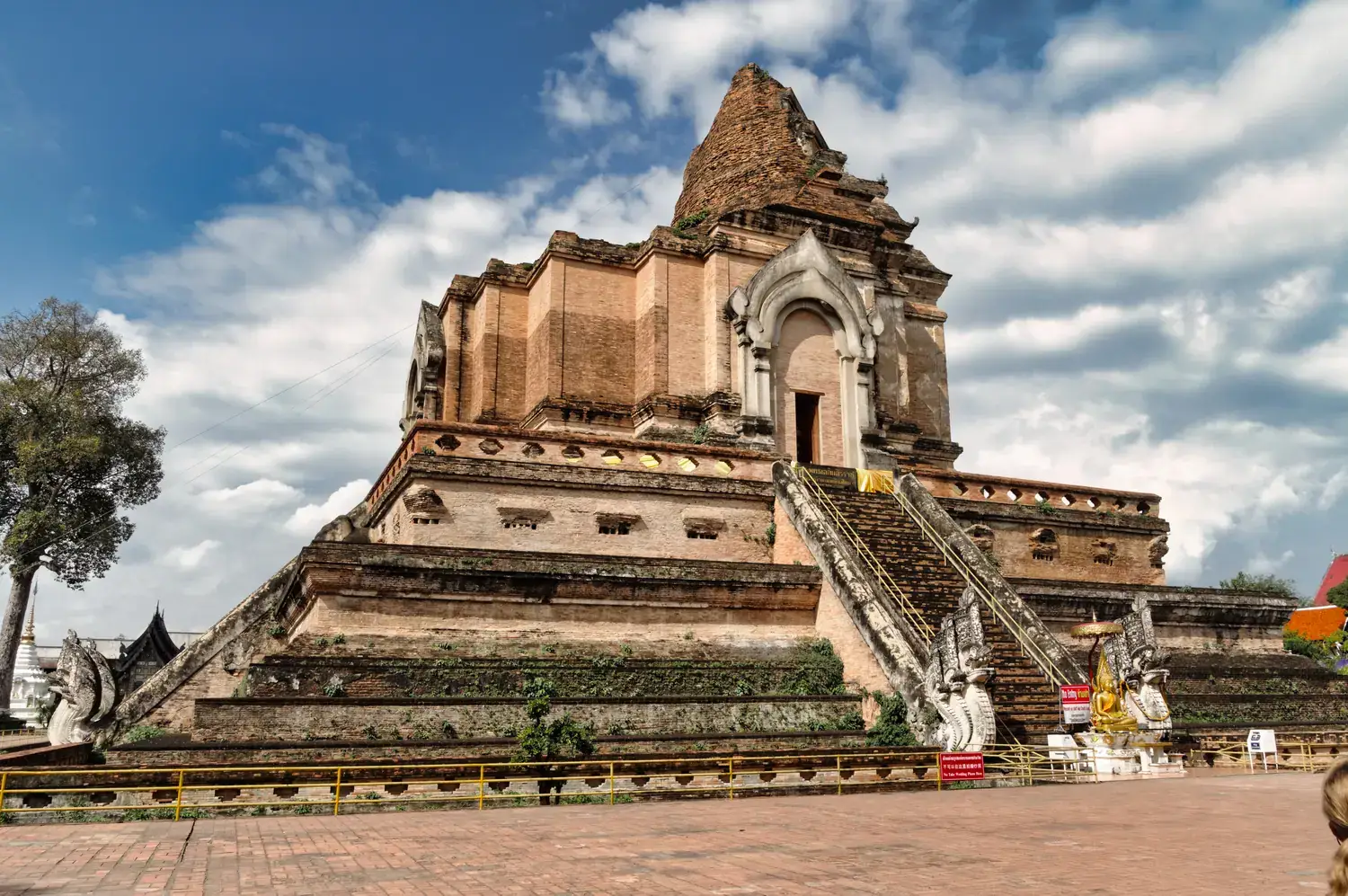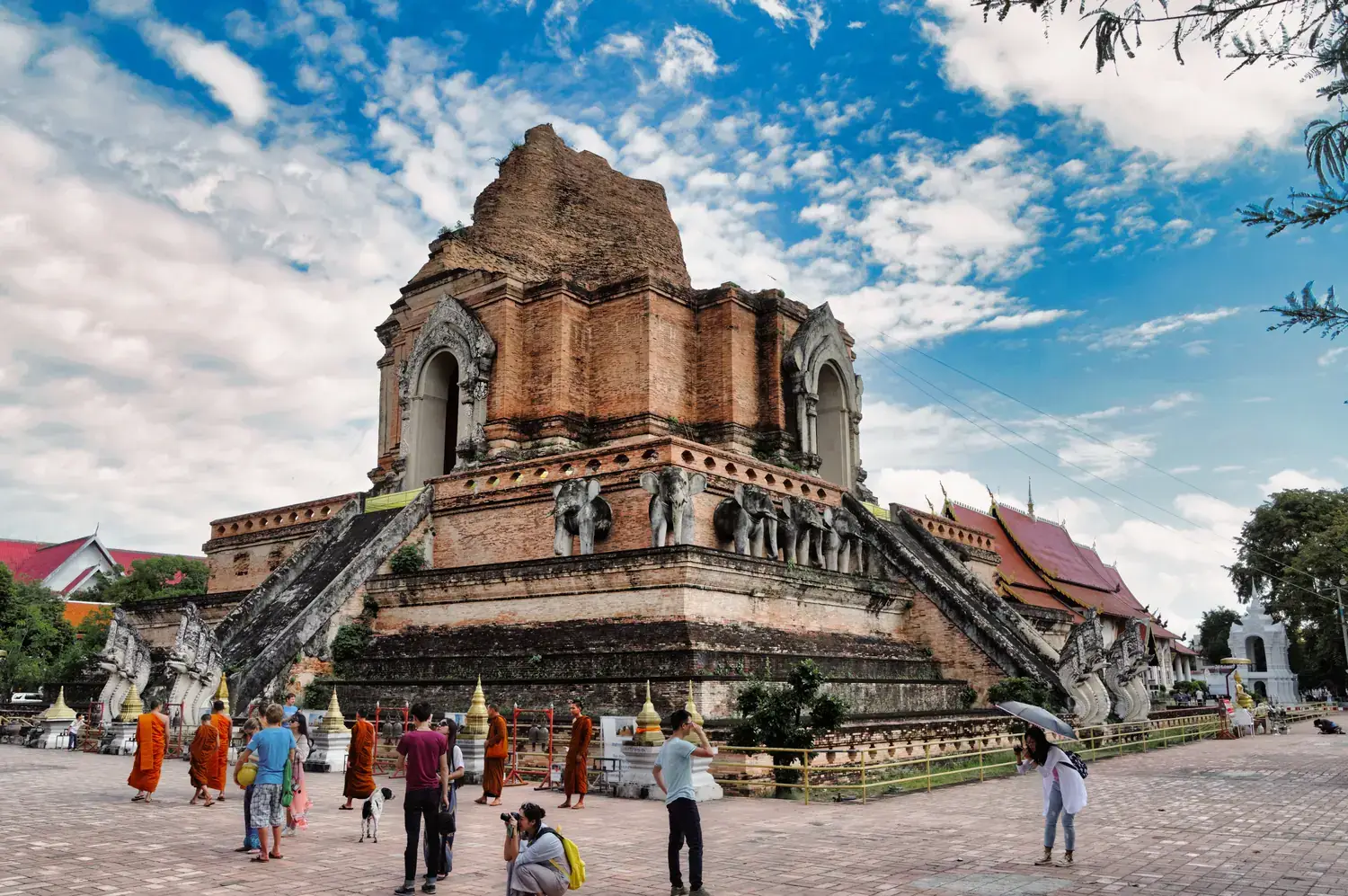 Wat Chedi Luang : Abrite un immense et ancien chedi (stupa) partiellement en ruine, d’une puissance architecturale impressionnante.