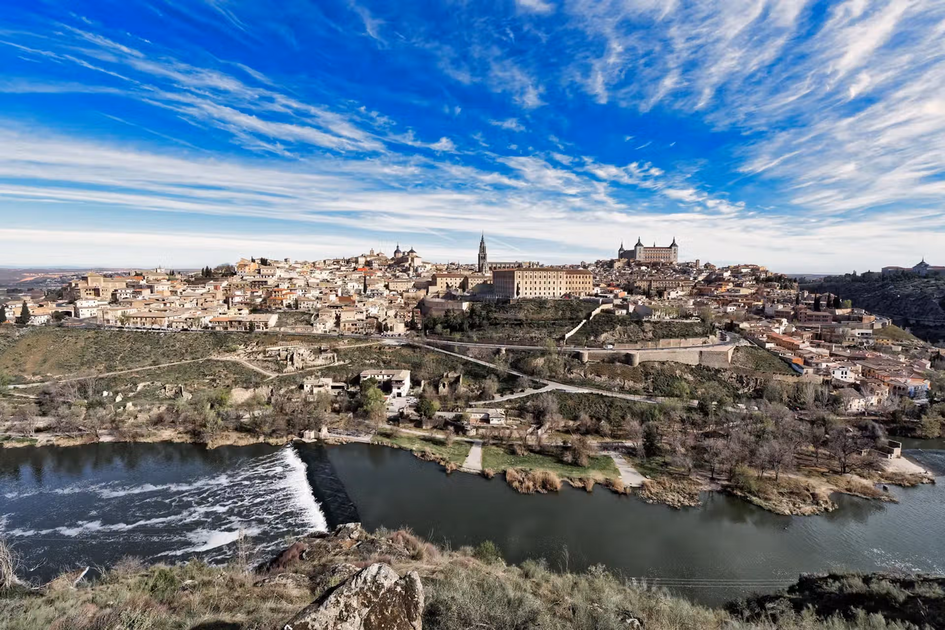 Tolède est une ville espagnole riche en histoire et en culture, située dans la région de Castille-La Manche, à environ 70 kilomètres au sud de Madrid. Elle est souvent surnommée la « Ville des Trois Cultures » en raison de l’héritage historique laissé par les chrétiens, les musulmans et les juifs qui y ont coexisté pendant des siècles. Cette diversité culturelle a profondément marqué son architecture, ses traditions et son atmosphère unique.