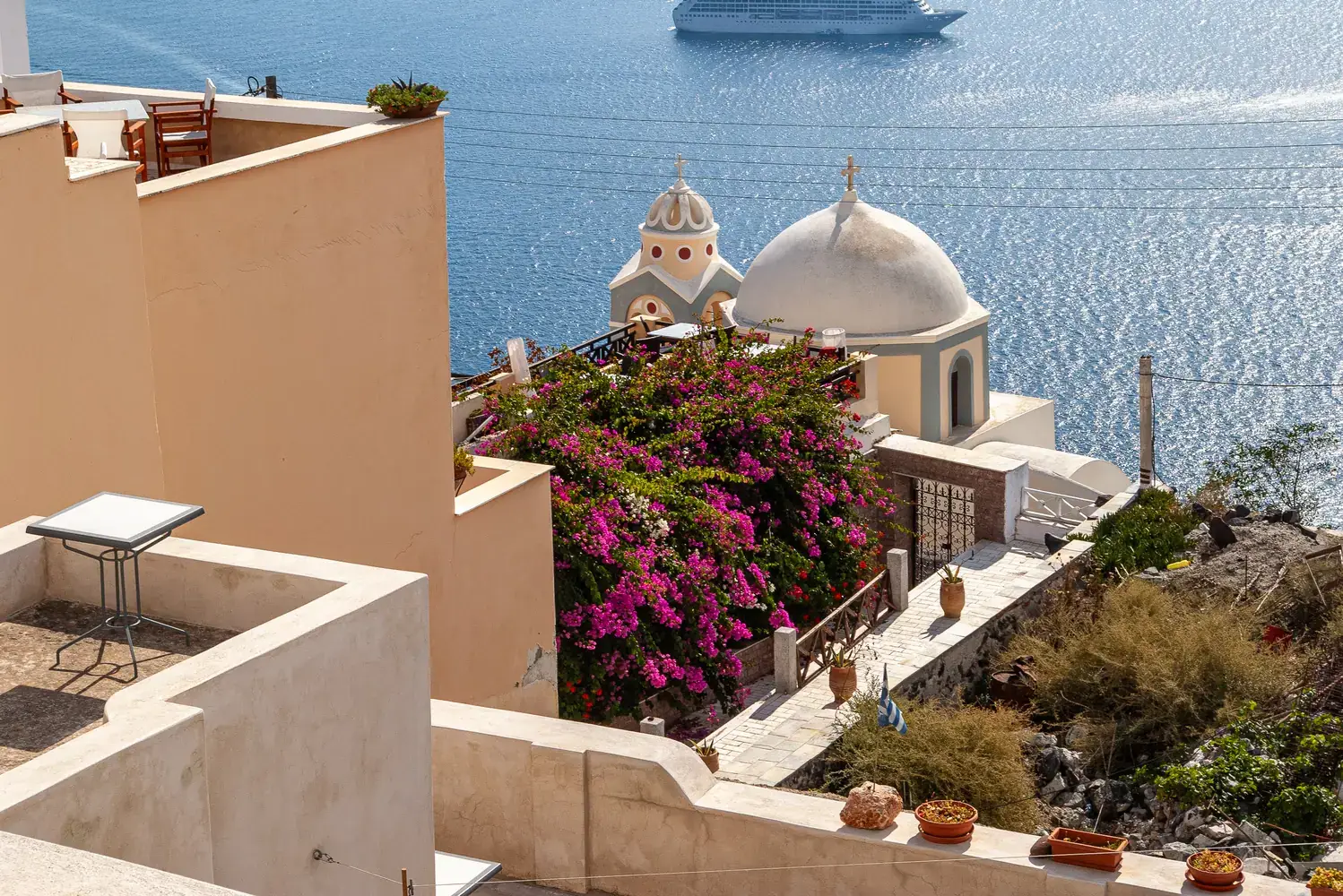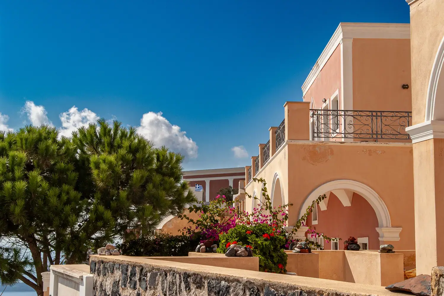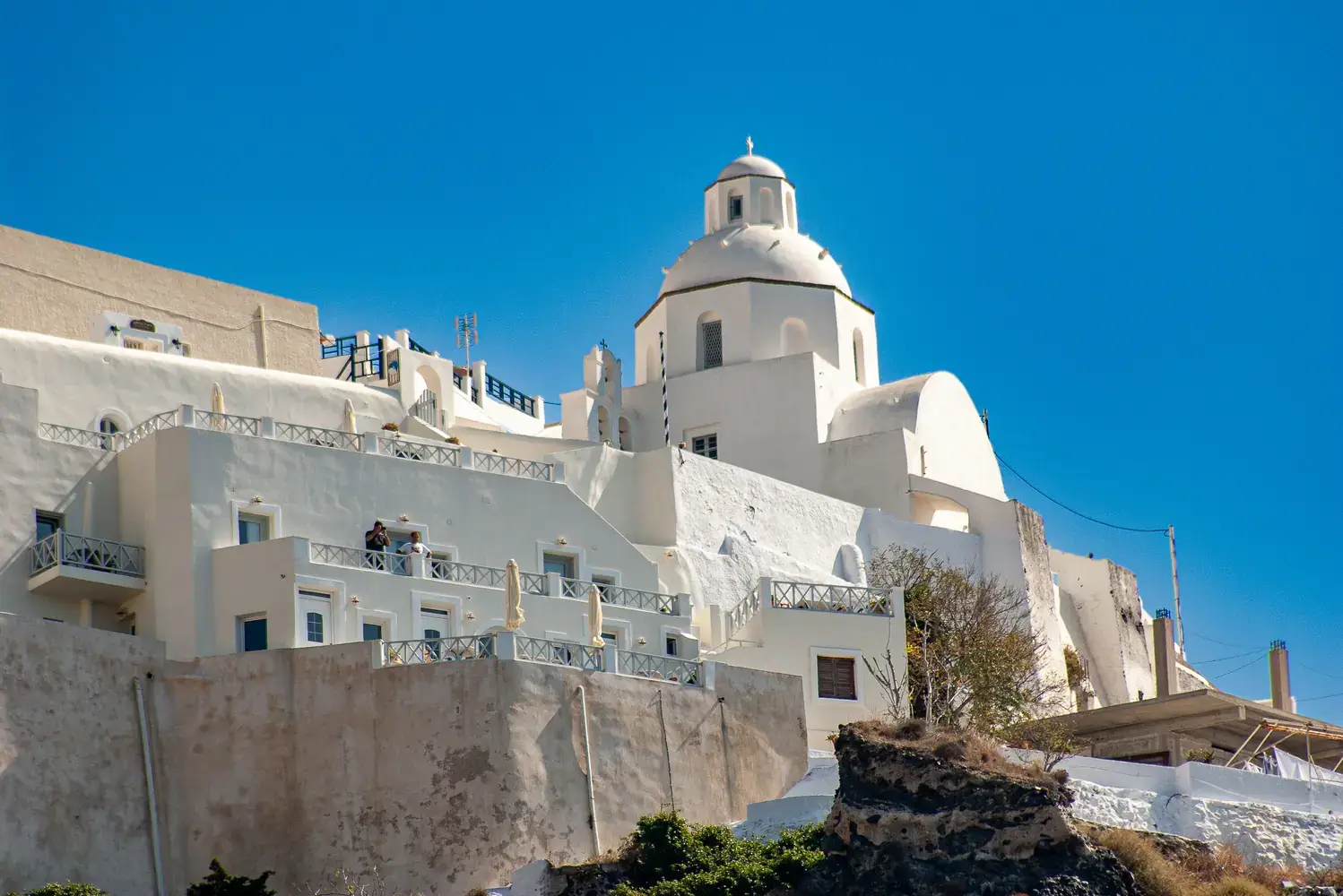 Où loger ? Fira est une excellente base, avec une offre d’hébergement très large, des chambres économiques aux hôtels de luxe avec vue sur la caldeira, souvent à des prix plus abordables que dans le village voisin d’Oia .