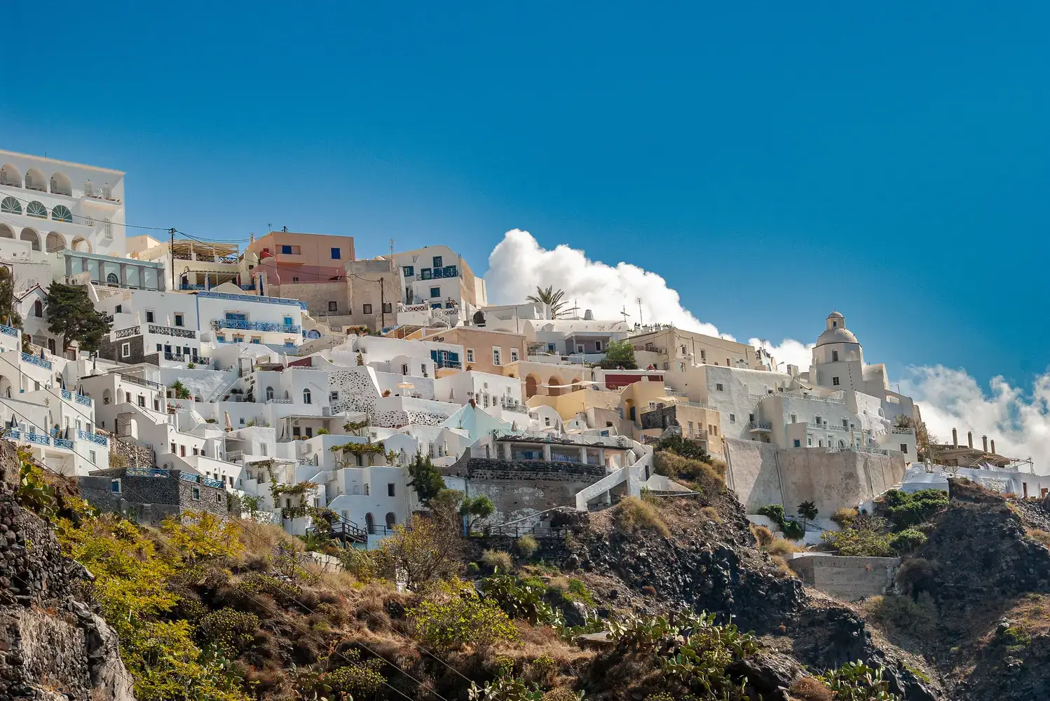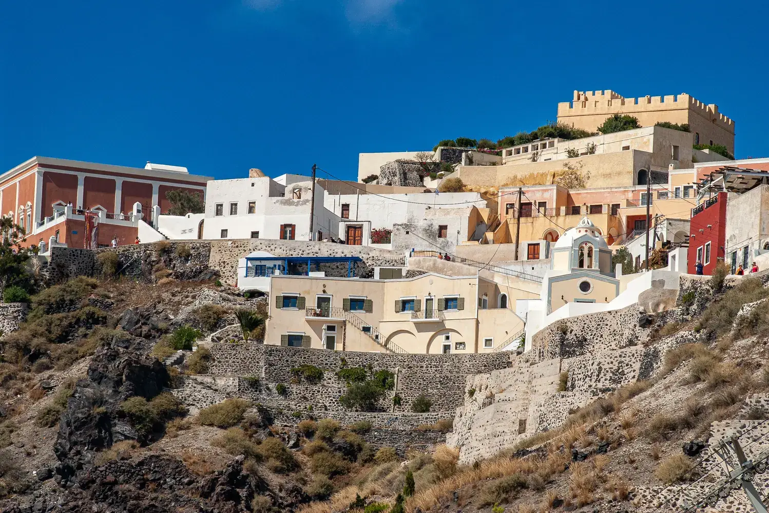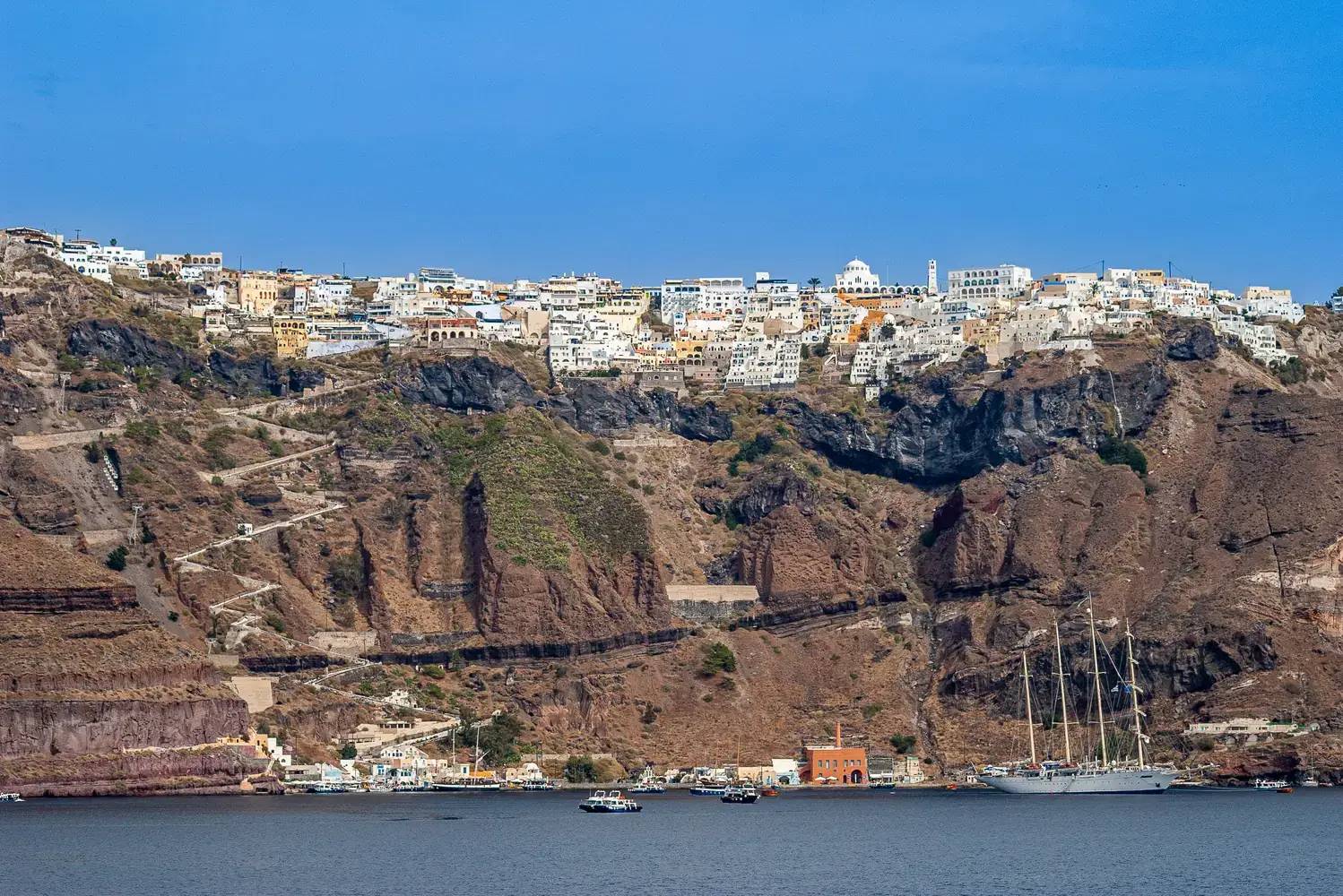 Le Vieux Port : Accessible par les 600 marches des escaliers des Karavolades ou par le téléphérique, il est le point de départ de nombreuses excursions en bateau vers le volcan, les sources chaudes et les îles voisines .