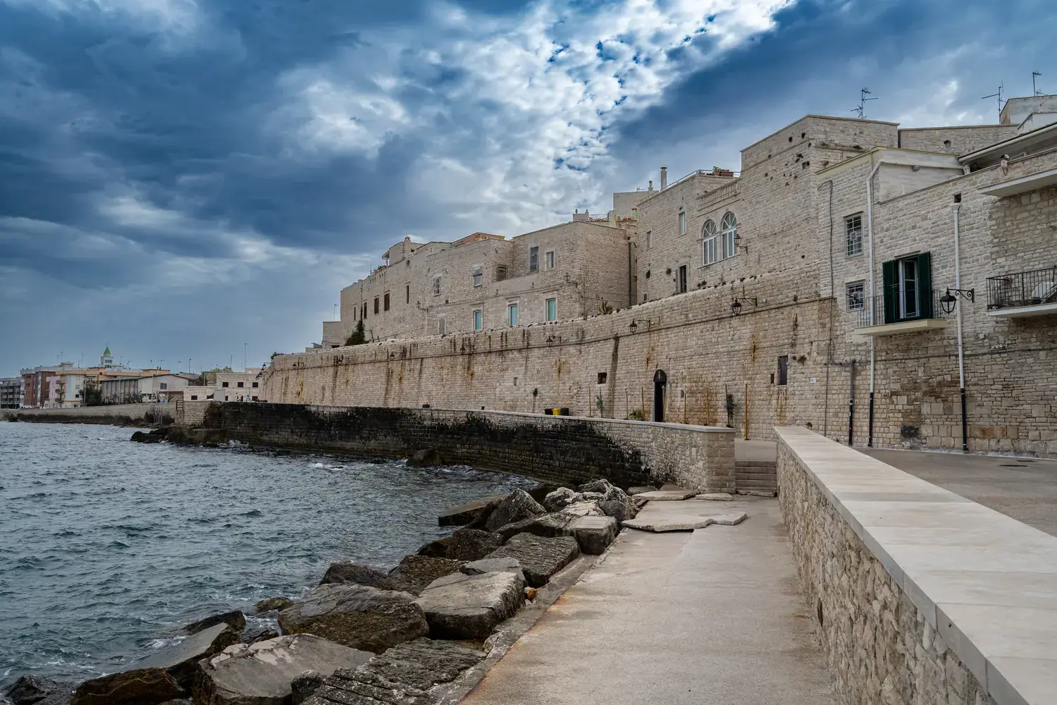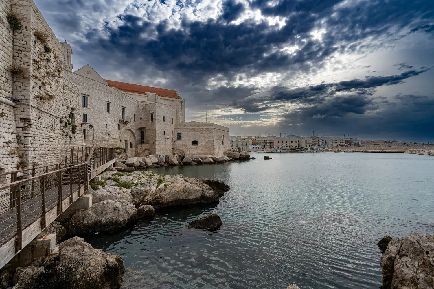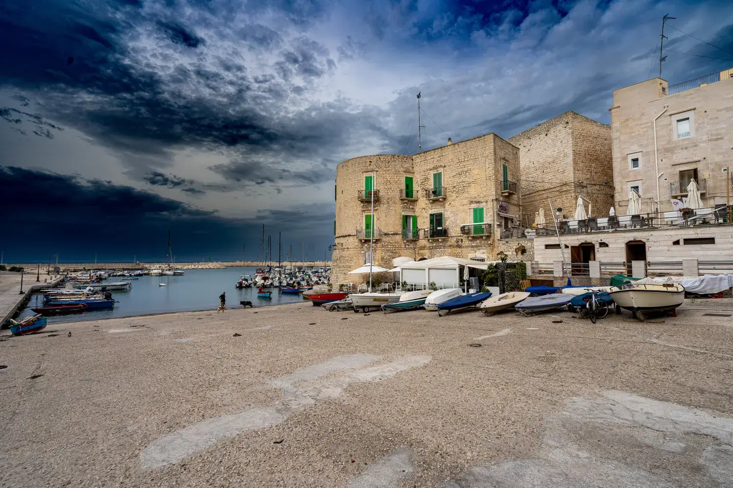 Le port est encore très actif. C’est un lieu animé où vous pourrez voir les pêcheurs préparer leurs filets et décharger leur pêche du jour. La promenade le long de la mer (Lungomare) est magnifique, surtout au coucher du soleil. Elle offre une vue imprenable sur la cathédrale et les maisons du centre historique se reflétant dans l’eau.