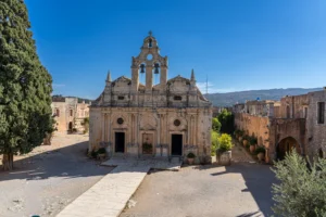 Le monastère d’Arkadi est un lieu emblématique de Crète, un véritable symbole de liberté et de sacrifice. Niché sur un plateau fertile à 23 km au sud-est de Réthymnon, il attire chaque année de nombreux visiteurs, tant pour sa beauté architecturale que pour son histoire poignante.