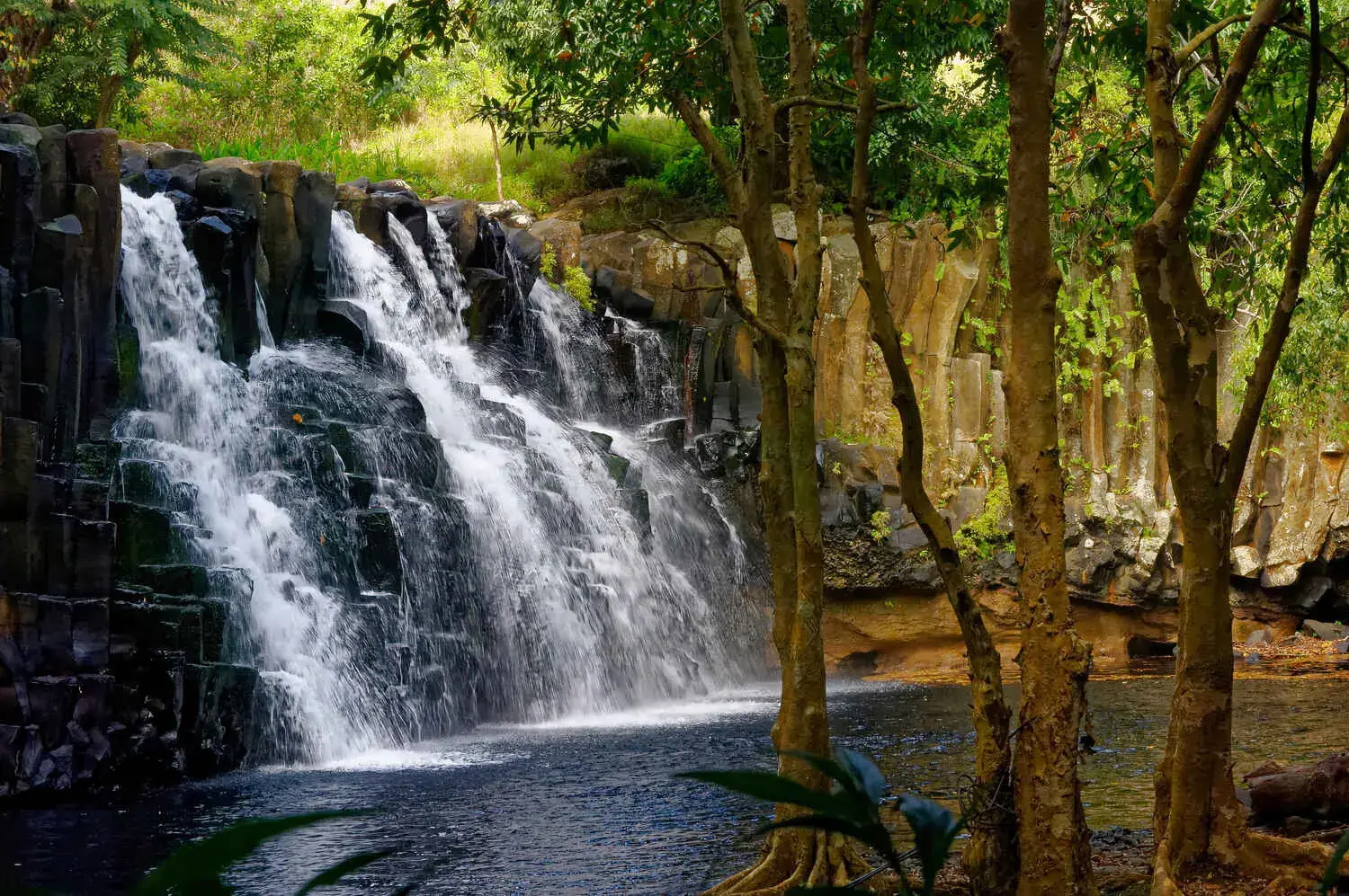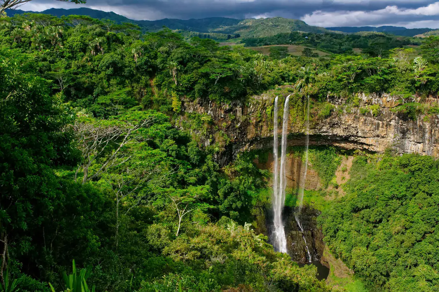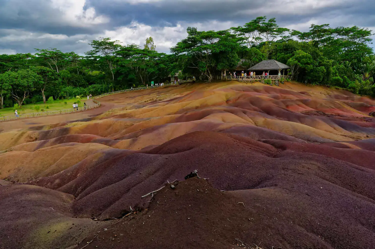Chamarel : La « terre des sept couleurs », une dune de terre aux couleurs volcaniques distinctes (bleu, vert, rouge, jaune), et la spectaculaire cascade de Chamarel.
