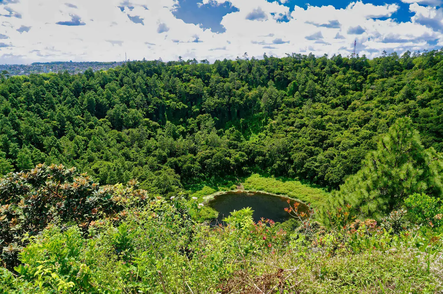 Un plateau central avec des montagnes, dont le point culminant est le Piton de la Petite Rivière Noire (828 m).