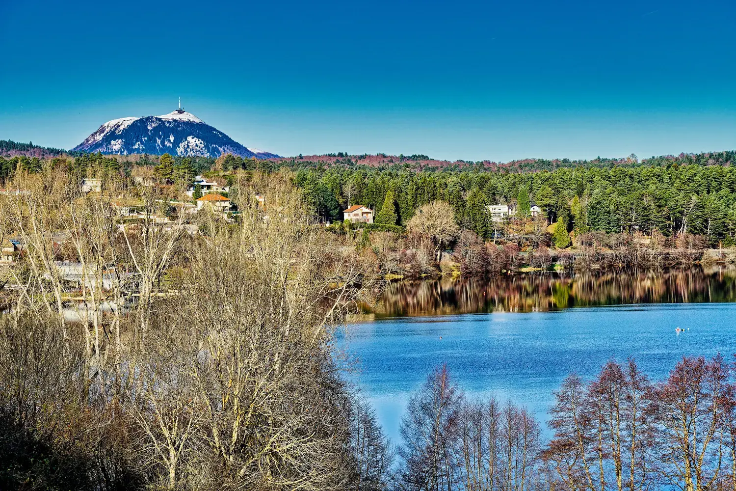 Le lac d’Aydat est le plus grand lac naturel d’origine volcanique du Massif Central français. Situé dans le département du Puy-de-Dôme, en région Auvergne-Rhône-Alpes, il est une destination touristique très prisée, à seulement une trentaine de minutes au sud-ouest de Clermont-Ferrand.