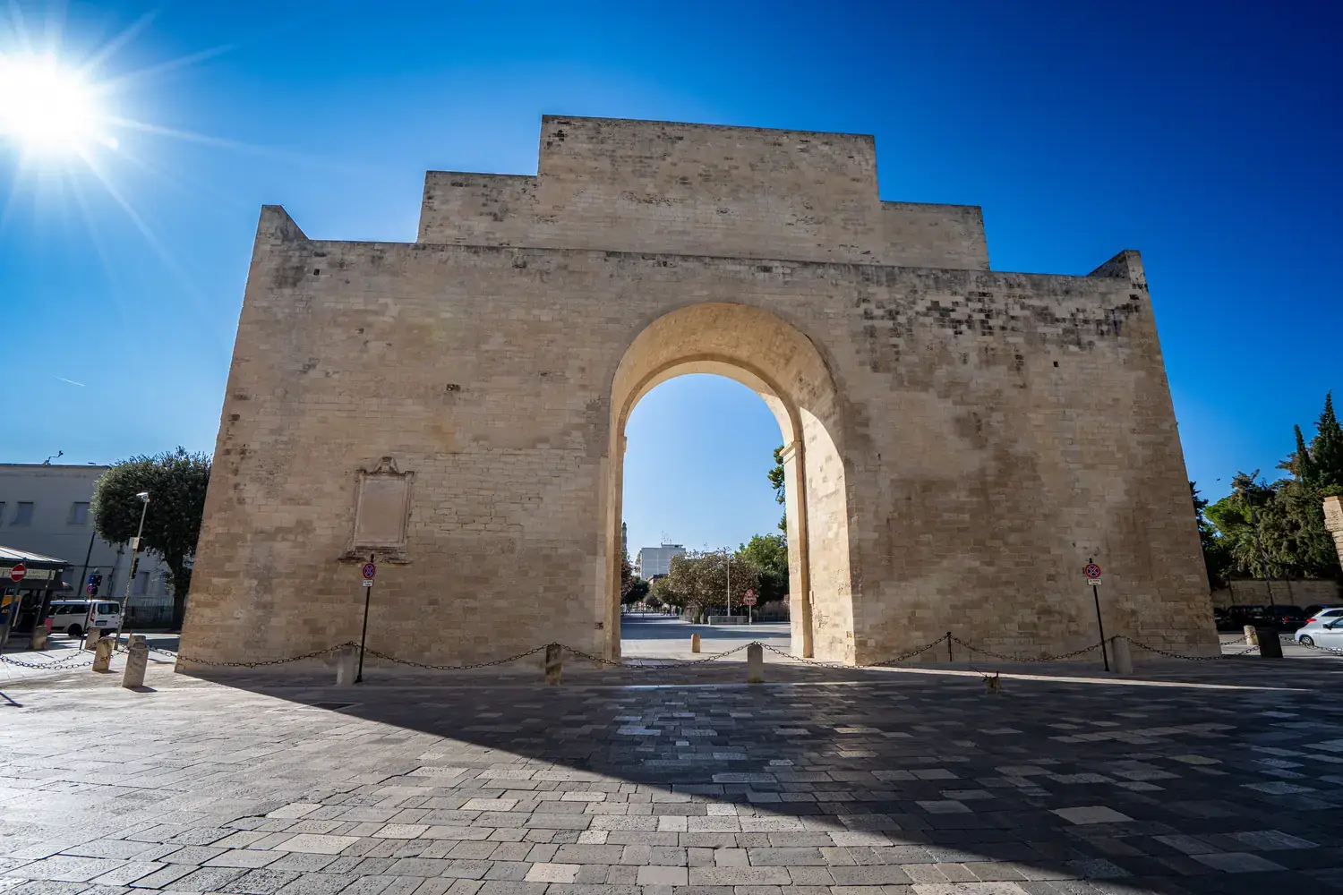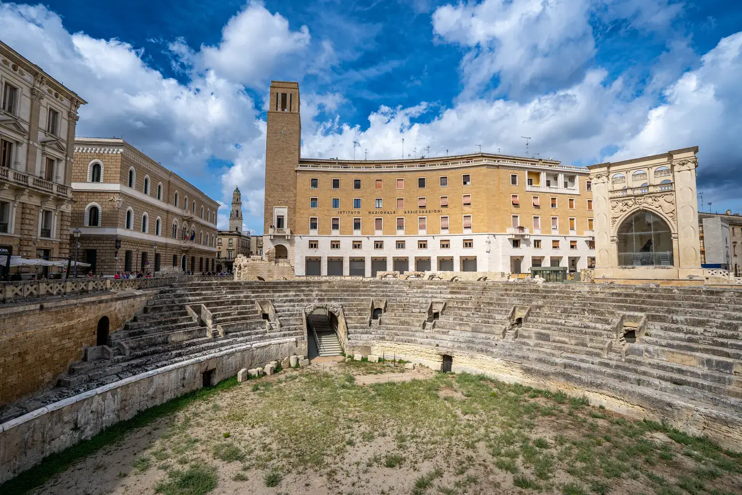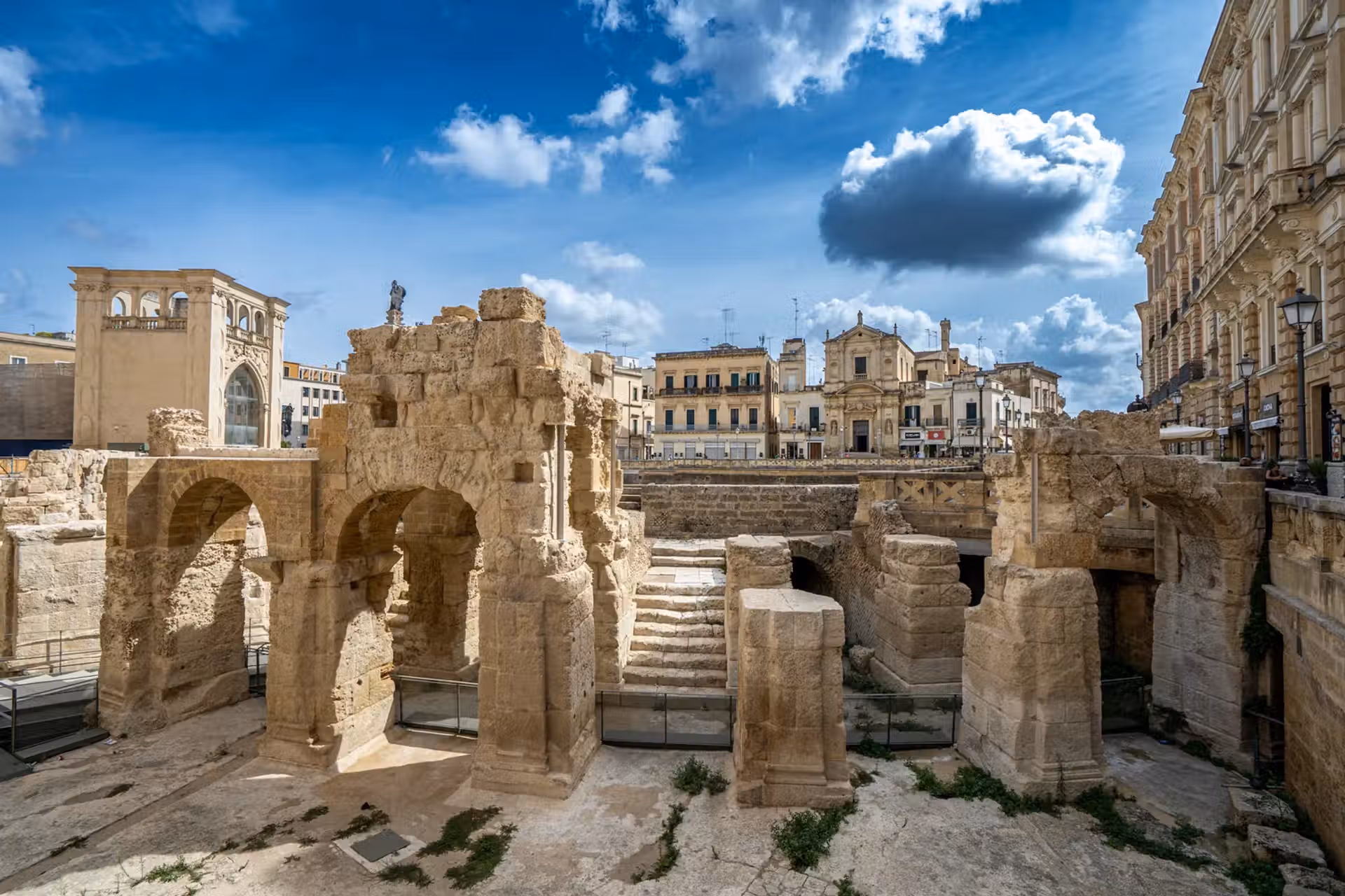 Époque Romaine : La ville s’appelait Lupiae. Vous pouvez encore voir un théâtre romain et un amphithéâtre en plein centre-ville (Piazza Sant’Oronzo), qui pouvait accueillir jusqu’à 25 000 spectateurs.