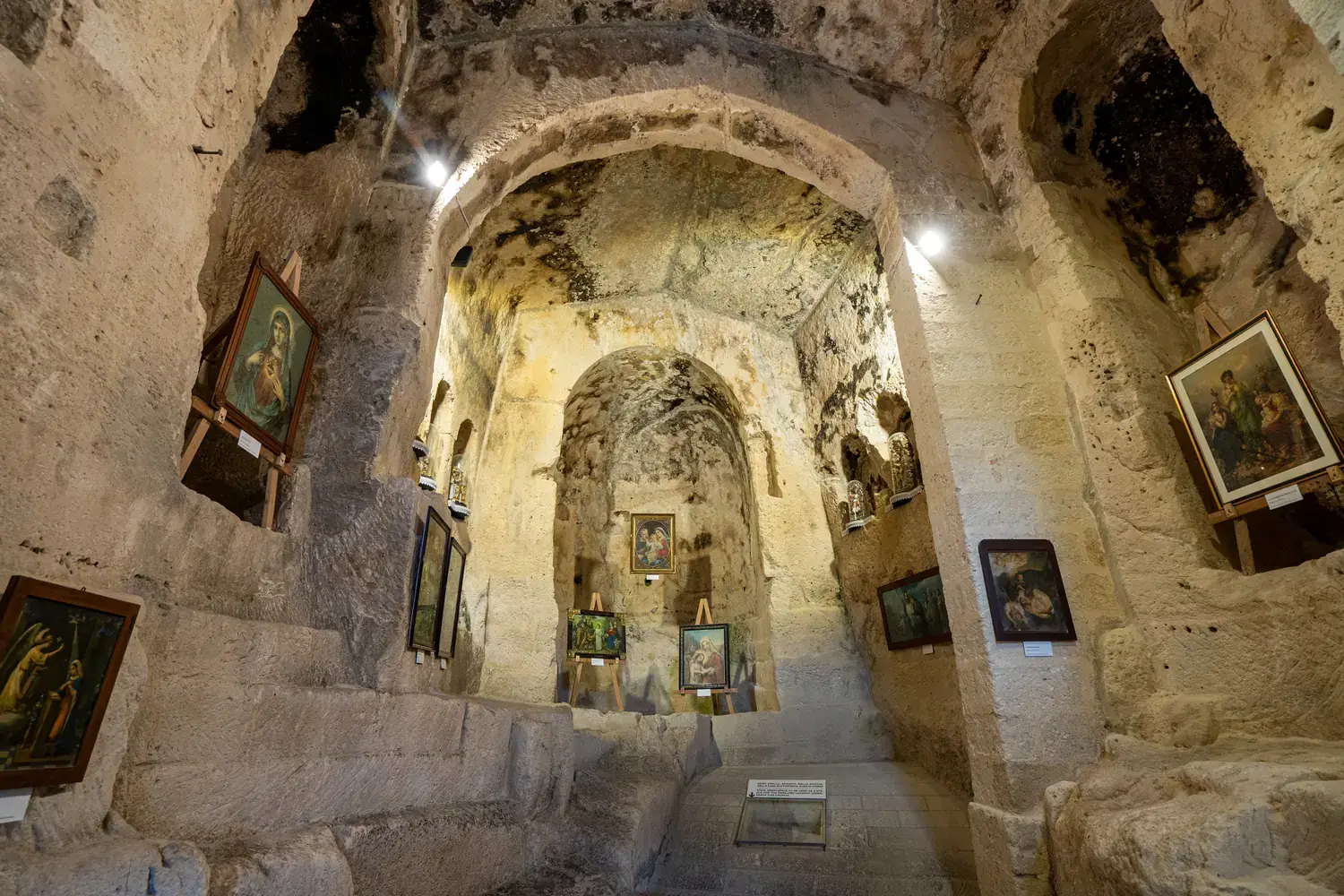Explorer les Églises Rupestres : Ne manquez pas Santa Maria de Idris et la Cathédrale de Matera qui domine la ville.