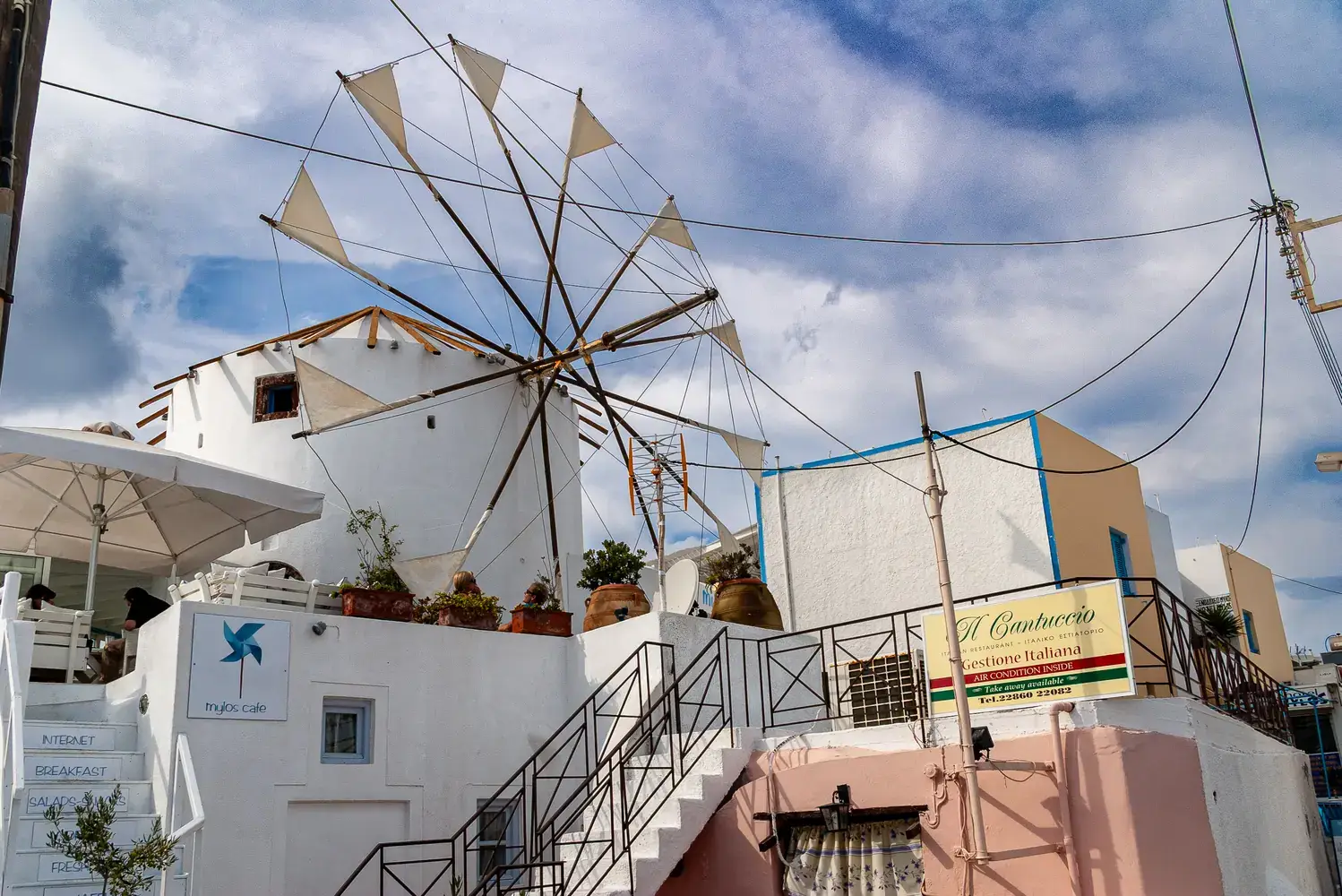Se perdre dans les ruelles : La rue principale pavée de marbre, Nikolaou Nomikou, longe la caldeira et offre des points de vue spectaculaires. N’hésitez pas à vous aventurer dans les passages plus étroits et les escaliers pour découvrir des perspectives uniques .