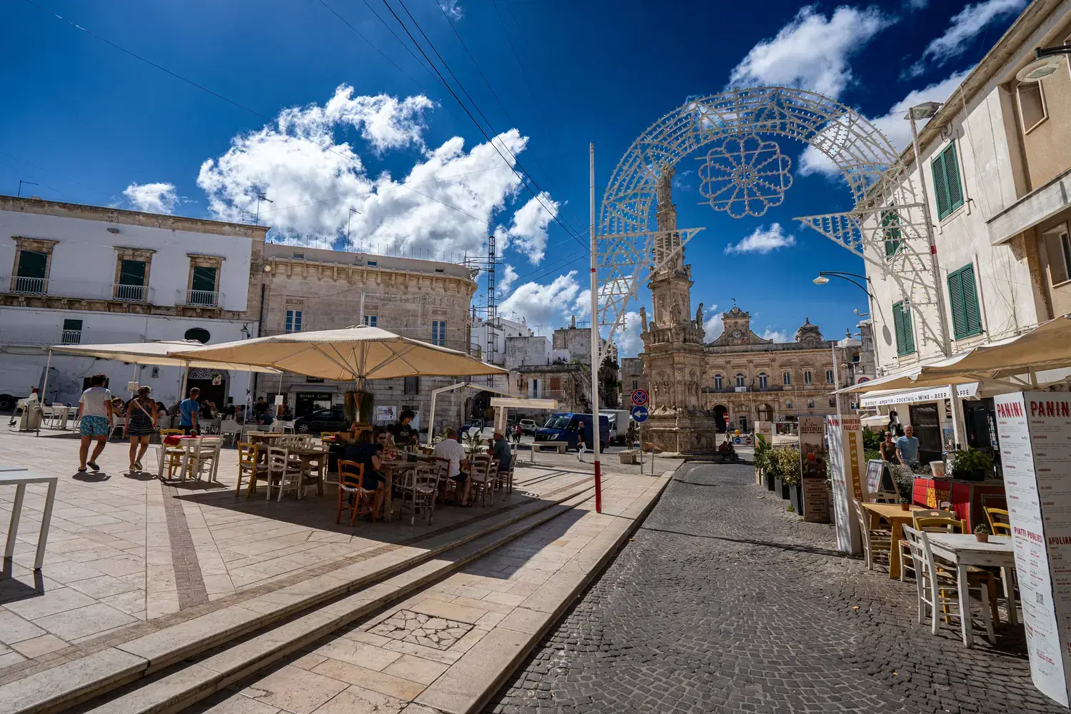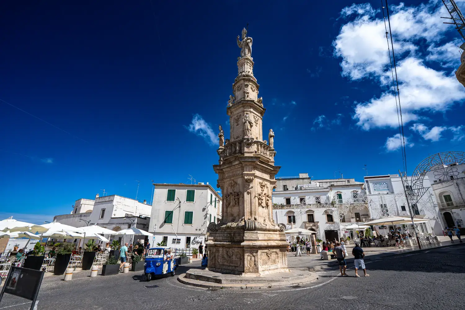 La Colonne de Sant’Oronzo : Sur la place principale, cette colonne est dédiée au saint patron de la ville, Sant’Oronzo, qui serait, selon la croyance locale, responsable d’avoir sauvé la ville de la peste au XVIIe siècle.