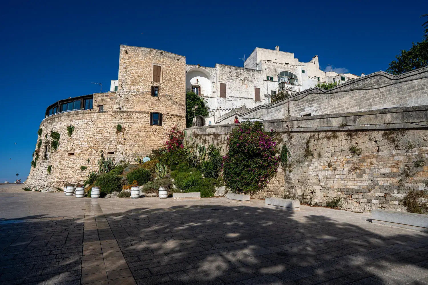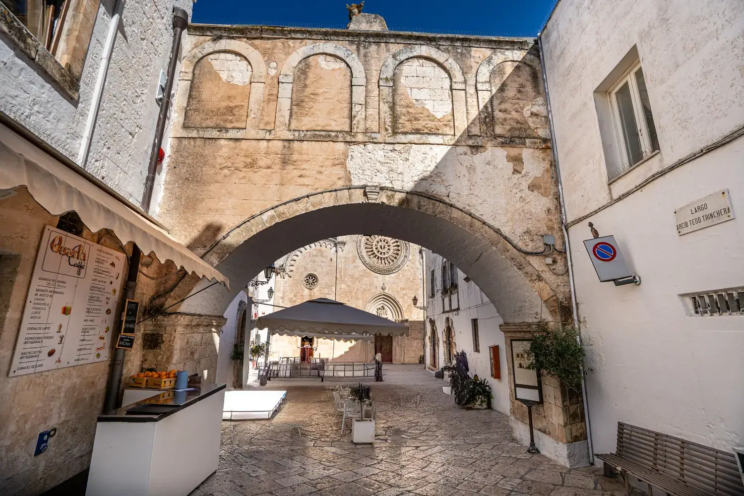 Les Remparts Aragonais : Ostuni était une ville fortifiée. Vous pouvez encore voir des portions des murs d’enceinte et des portes monumentales, comme la Porta Nova, qui offrent des vues imprenables sur la vallée d’oliviers centenaires qui s’étend jusqu’à la mer.
