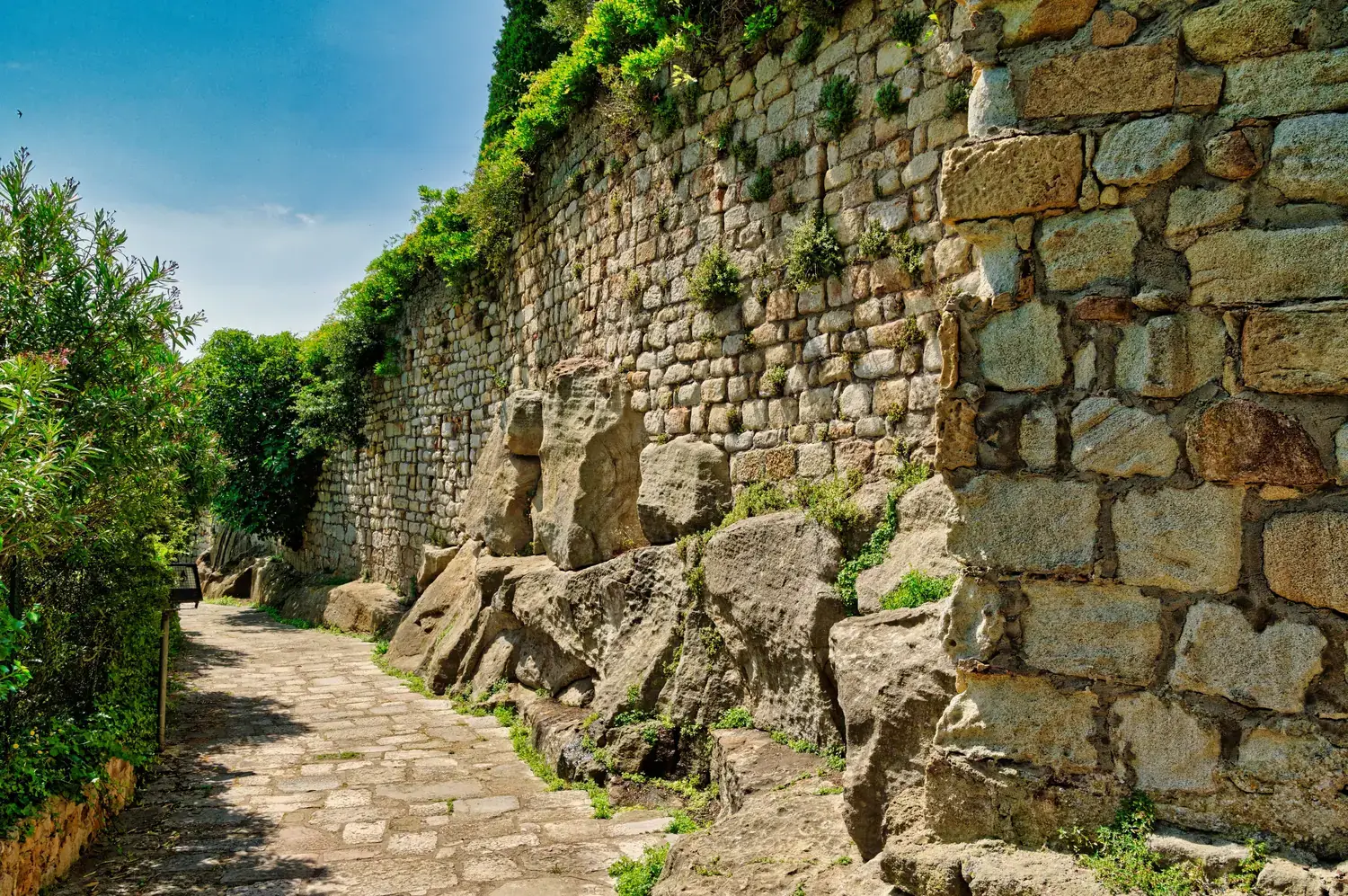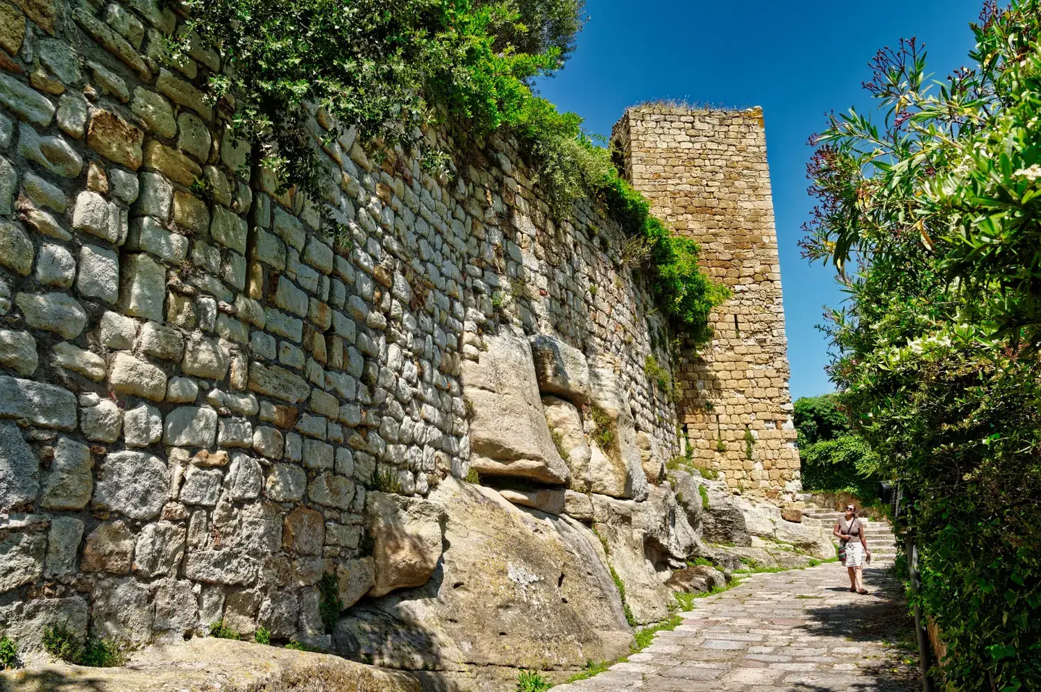 Murailles et points de vue : Des remparts offrent une vue magnifique sur les champs environnants et la mer Méditerranée.