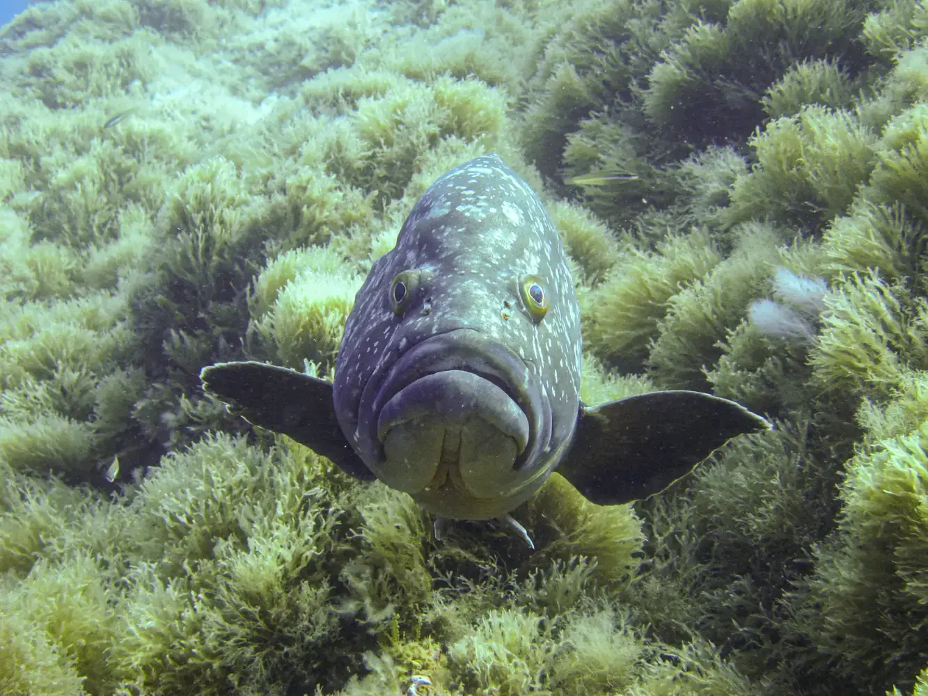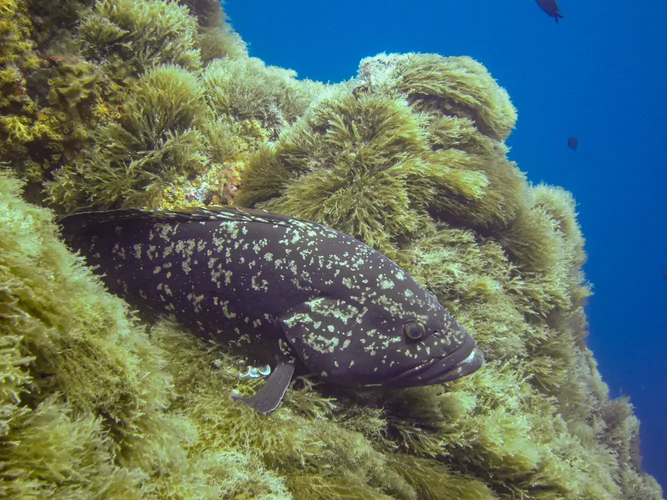 La Gabinière Est et Ouest : Ces deux tombants qui plongent à pic vers 40-50 mètres sont LE spot pour observer les mérous. Ils y sont nombreux, curieux et peu craintifs. Vous y verrez aussi des nuées de corbs (brown meagre), des mostelles, des congres et, avec un peu de chance, des dentis.