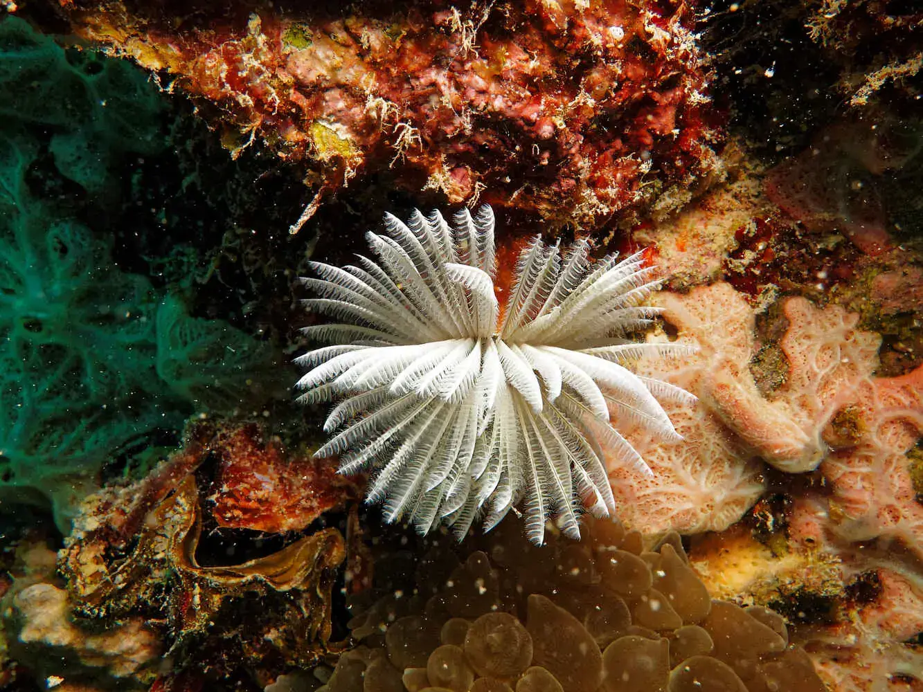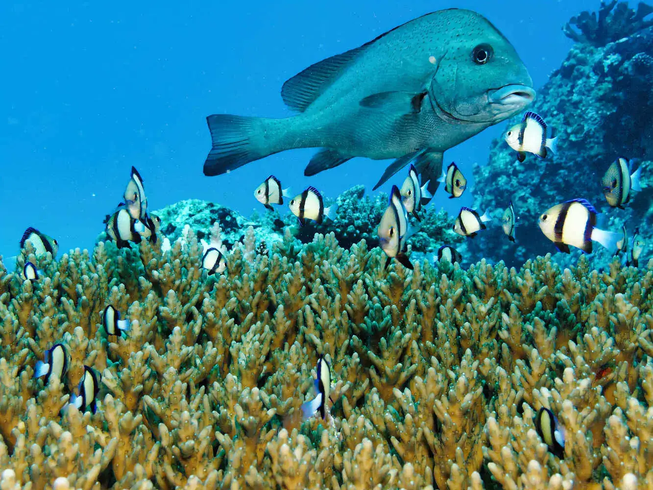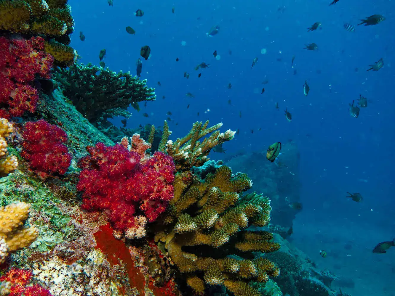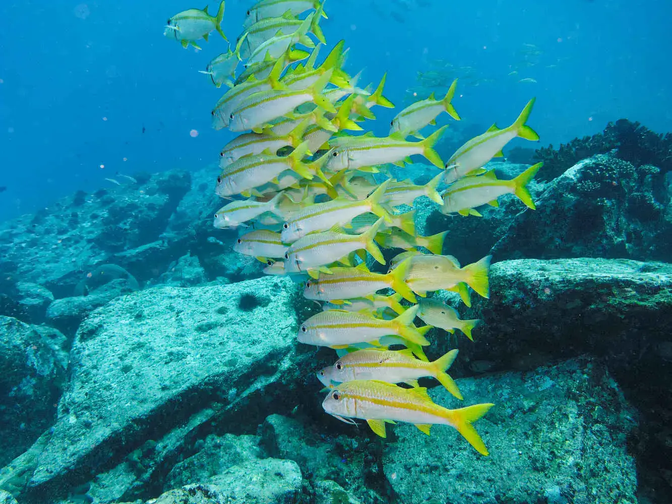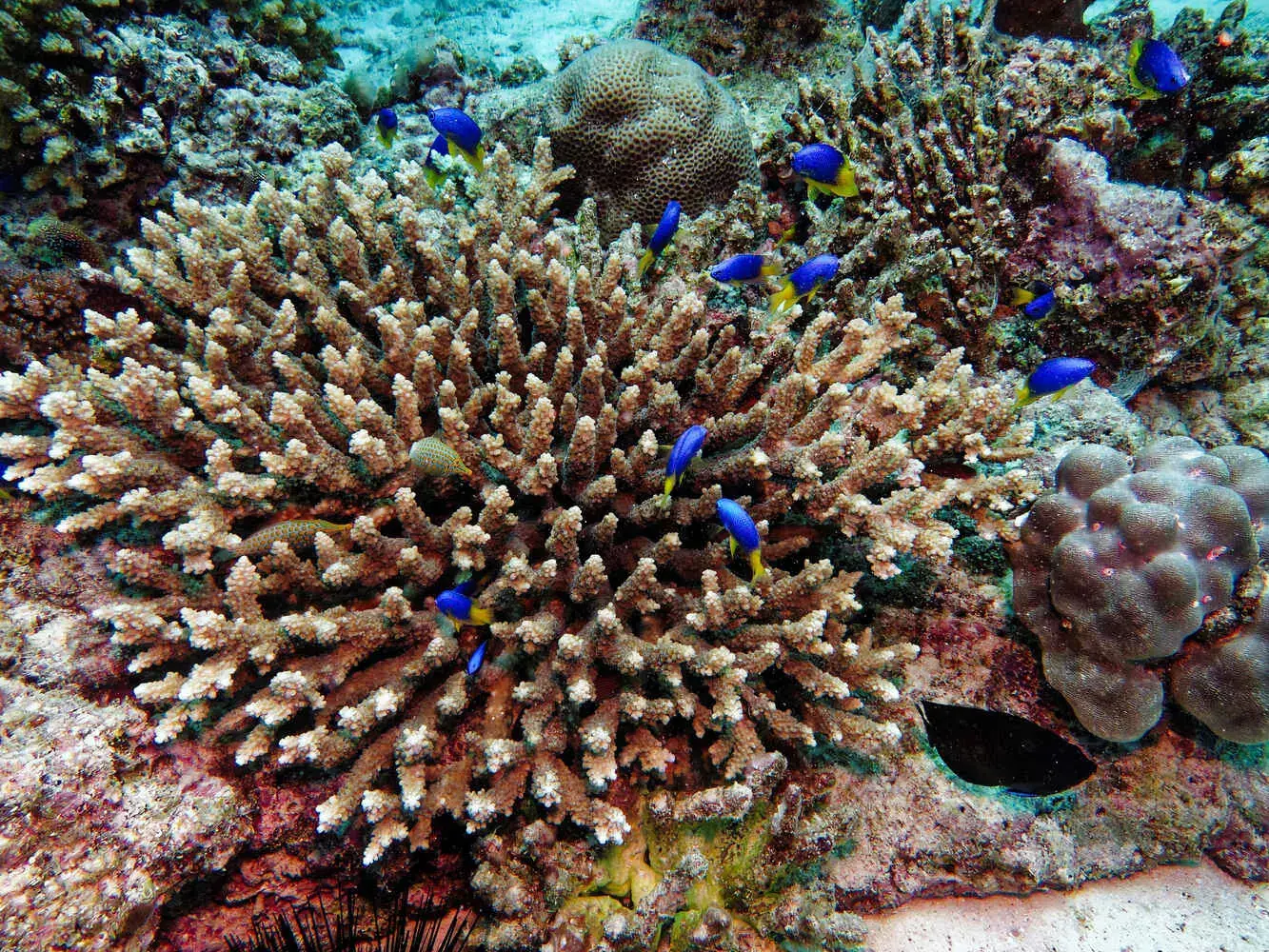 Coraux : Les récifs sont principalement constitués de coraux durs, avec de superbes formations. Le blanchissement a eu un impact, mais la résilience est en marche et les récifs restent très vivants.