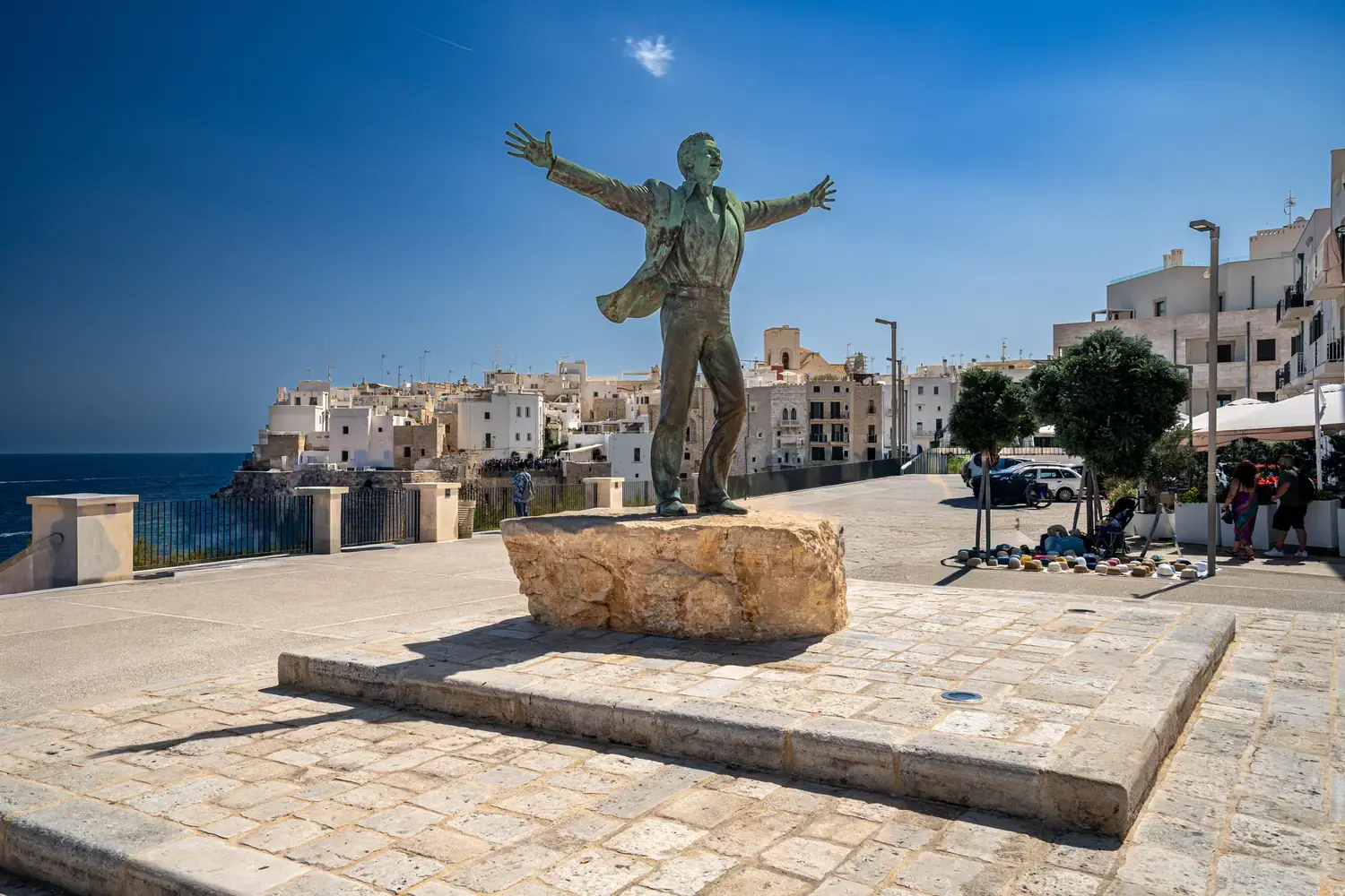 Polignano est la ville natale de Domenico Modugno, le chanteur célèbre pour son tube mondial « Nel Blu Dipinto Di Blu » (Volare). Une statue lui est dédiée sur la promenade, rendant hommage à cet artiste légendaire.