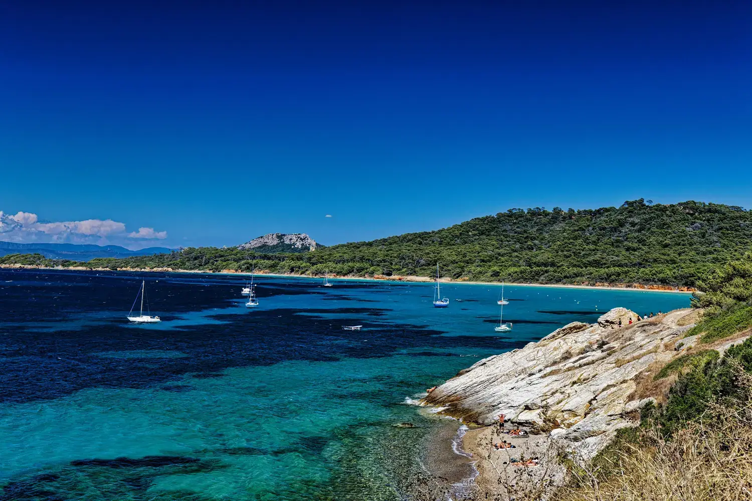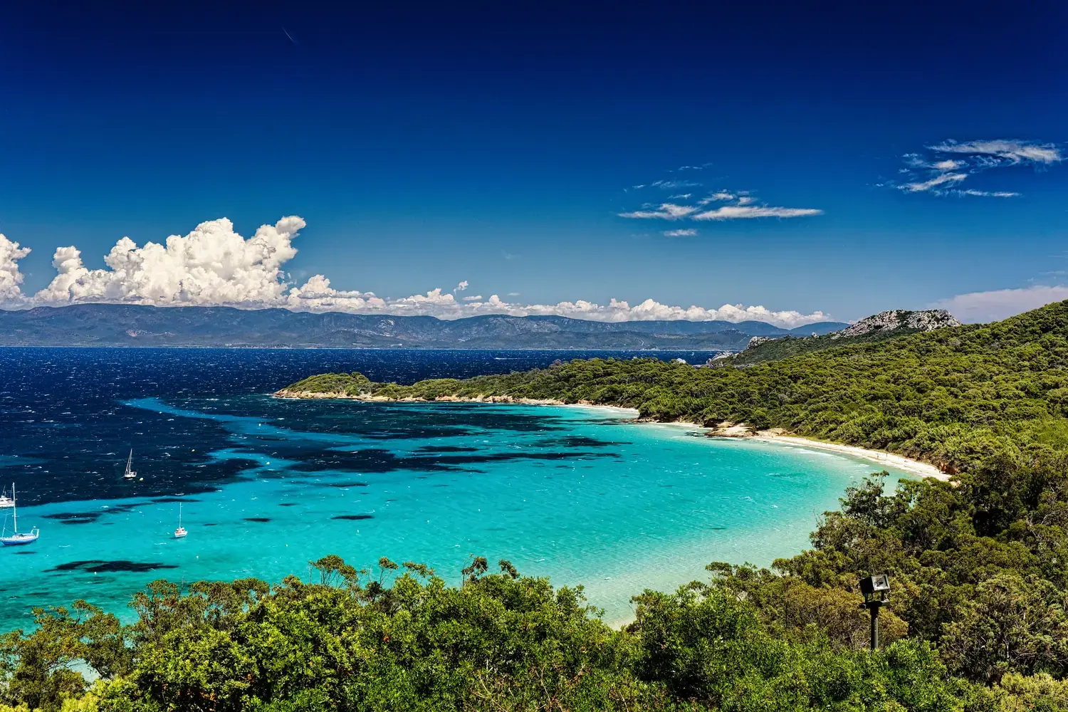 Elle offre des paysages variés : falaises abruptes au sud, plages de sable fin au nord (comme la plage d’Argent, l’une des plus belles de Méditerranée), forêts de pins et maquis méditerranéen.