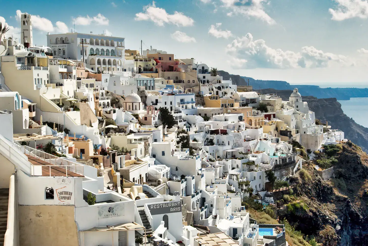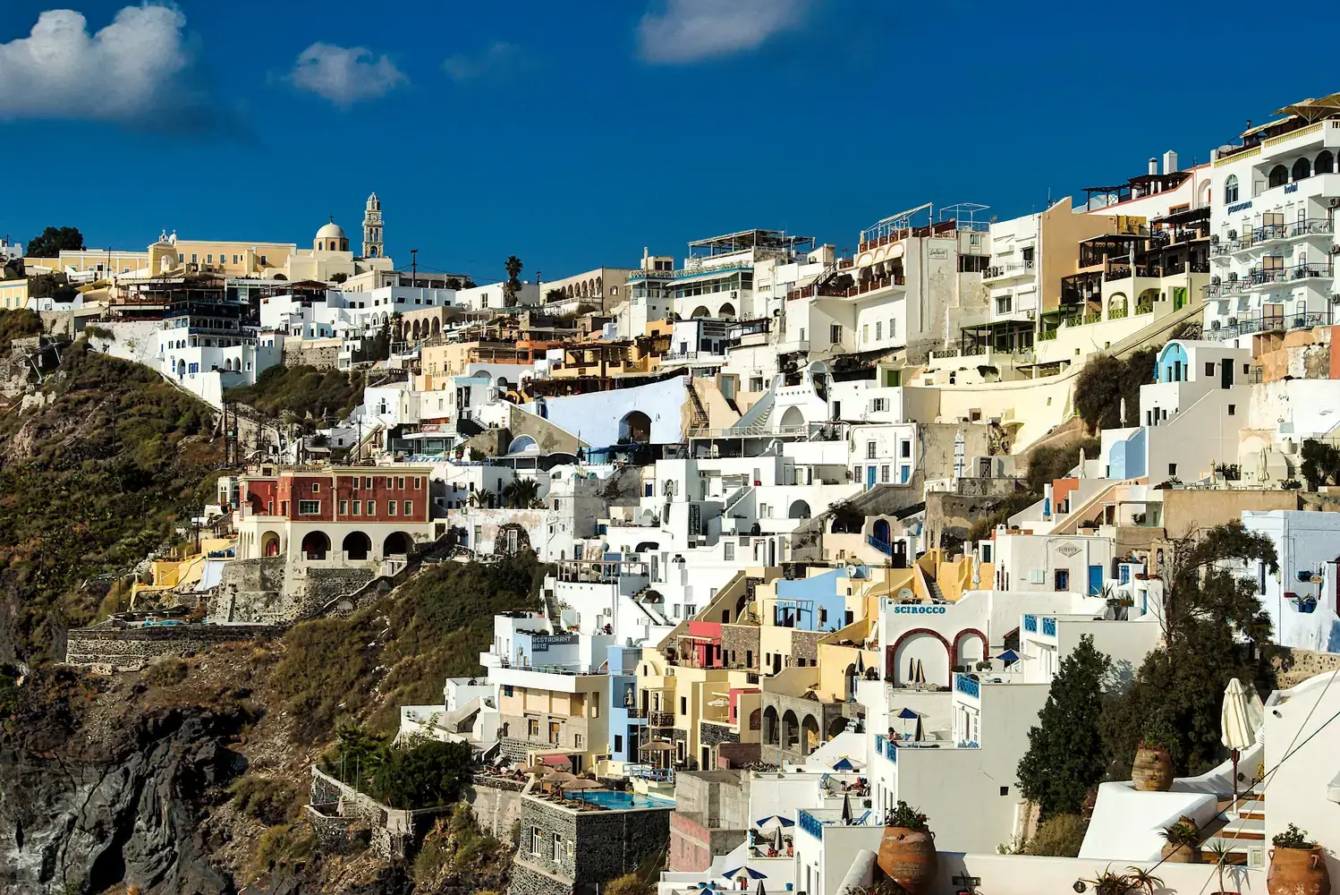 Fira : La capitale animée de l’île, pleine de vie, de boutiques et de restaurants.