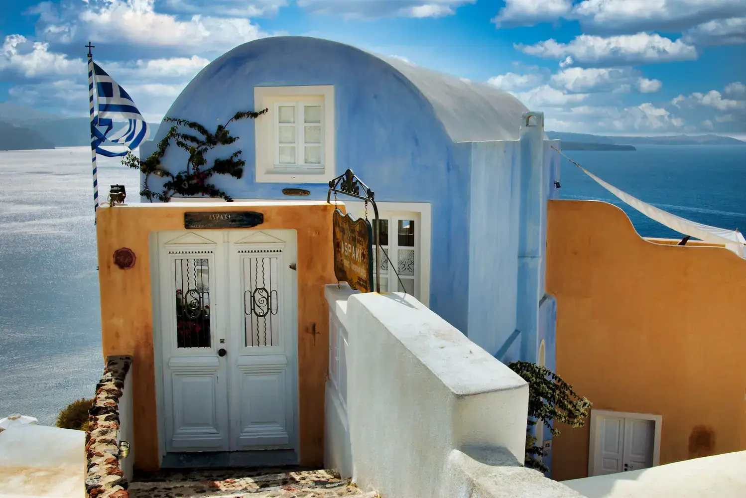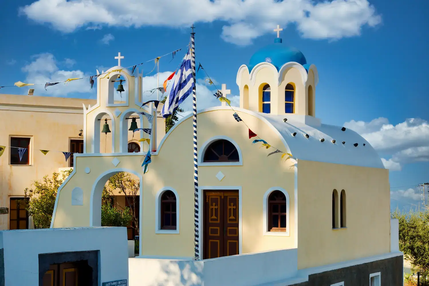 Maisons Blanches et Coupoles Bleues : Les villages sont un dédale de maisons d’un blanc éclatant, d’églises aux coupoles bleues et de ruelles pavées. Cette architecture est non seulement belle mais aussi fonctionnelle, conçue pour résister à la chaleur et aux séismes.